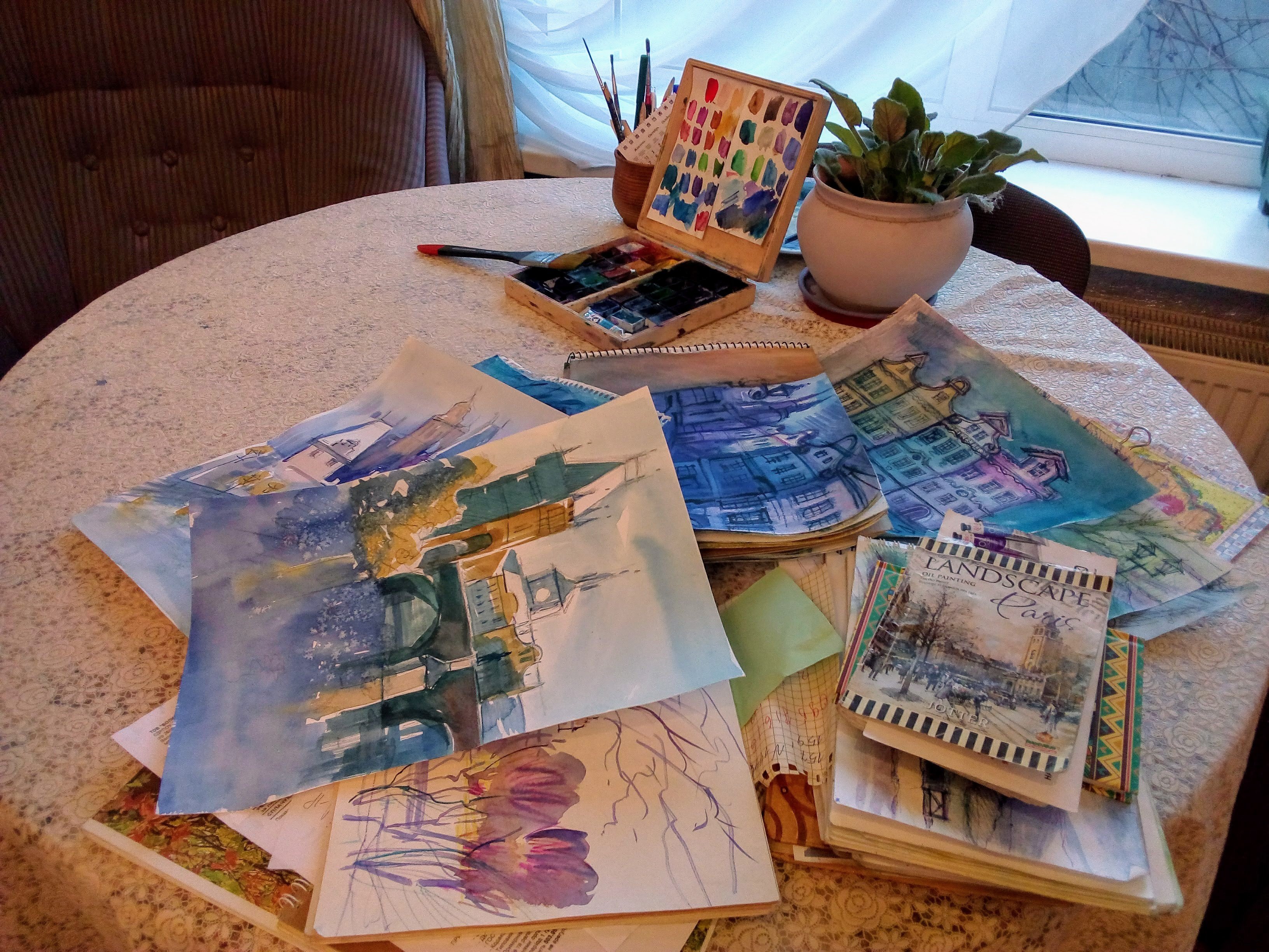 Почала працювати думка, фантазія, уява. Згодом на мене великий вплив справили роботи французьких імпресіоністів – багатство їхньої палітри, вміння створювати «повітряність» у творах. Потрібно багато працювати, щоб відчути цю техніку, відчути колір. Важливі також і матеріали, з якими працюєш: це відповідної цупкості папір, якісна фарба на 24 відтінки. Я надаю перевагу певним матеріалам, підбираю їх для своєї авторської палітри. І постійно працюю, пишу…