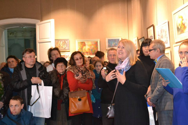 Загальне враження усіх нас дуже влучно висловила Галина Отчич, голова українського відділення Міжнародної акварельної асоціації, яка була в захваті від того, наскільки роботи українців різноманітні й цікаві. Багато експресії, емоцій, ніжності, мужності! Я теж відмічала про себе оригінальні кольорові рішення, експерименти у техніці, стилістичні знахідки, новизну тем. Для мене як художника тут було просто «море» вражень, інформації, спілкування!Виступає Галина ОтчичЯку роботу обрала ти для самопрезентації на цій важливій мистецькій події? Цікава також історія її написання.