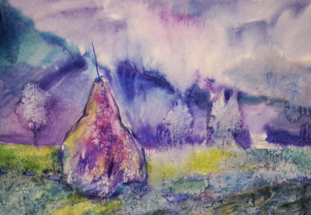 Робота називається «І знову все змиває дощ!». Це пейзаж, створений за враженнями пленеру в Рахові у Закарпатті влітку минулого року. Одного дня групою художників ми приготувалася до роботи на пленері, а наша кураторка Емма Левадська без годинника, лише за положенням хмар, сонця відносно гір визначила, що незабаром почнеться дощ.. Ми швидко змінили наше розташування і писали картини у світлих проміжках між дощем. Це був теплий, приємний літній дощ. Свою акварель я написала вже вдома. У її прочитанні зрозуміла і природна, і життєва символіка оновлення, очищення водою. Ця картина експонувалася також на Всеукраїнській виставці до Дня Незалежності в Києві в 2017 році.Яка особливість акварельної техніки, що робить її такою привабливою для самовираження різних мистців?