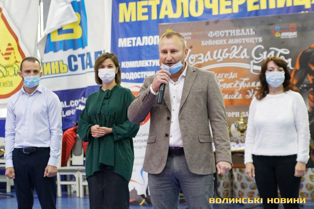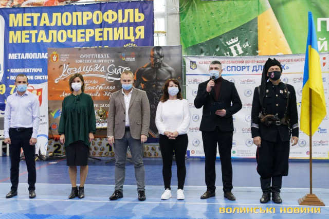 Атлетів зібрала в обласному центрі участь у фестивалі бойових мистецтв «Козацька слава», присвяченому Дню захисника України. Приємно, що до свята приєдналися й закордонні гості. Так, окрім збірних Донецької, Хмельницької, Київської, Одеської, Вінницької та Волинської областей, у двобоях зійшлися й воїни з Італії (місто Брешіа).Фестиваль розпочався з виступу Олександра Кулакова – організатора змагань, голови Федерації козацького двобою Волинської області, директора Волинського обласного центру фізичного здоров’я «Спорт для всіх».Насамперед він нагадав присутнім про карантинні обмеження та попросив ставитися до них відповідально і з розумінням. У привітанні ж Олександр Кулаков підкреслив: «Кожен з вас є представником еліти. Еліти нашої України. Адже ви є здорова, активна, спортивна молодь».«Ви ті люди, які показують власним прикладом, як правильно поводитися в житті, аби бути здоровим. Будуть і переможці, і переможені. Але ті, кому щось не вдасться, – не засмучуйтеся! Обов’язково для вас це має стати такою точкою, після якої ви будете ще більше тренуватися. Зі ще більшою завзятістю. Тому в жодному разі не засмучуйтеся, адже це лише початок», – звернулася до спортсменів заступниця голови правління Фонду Ігоря Палиці «Тільки разом» Катерина Шкльода. До слова, саме завдяки підтримці Фонду учасники змагань отримають пам’ятні подарунки та нагороди.Козацького духу, звитяги, міцного здоров’я та позитивних емоцій побажав усім присутнім Володимир Захожий – директор департаменту сім’ї, молоді та спорту Луцької міської ради – ще одного партнера змагань.Шоу-програма спортивного фестивалю вражає насиченою програмою та яскравими виступами. Паралельно з двобоями гості свята мали нагоду роздивитися обладунки лицарів волинської Аyna Bera, повправлятися у володінні зброєю, дізнатися цікаві факти з життя стародавніх та сучасних воїнів, зробити пам’ятні світлини у тематичних фотозонах.Справжньою окрасою Фестивалю стали показові виступи учасників клубів «Спас» та «Герць». Вони власним прикладом продемонстрували, що справжня козацька звитяга та завзяття не залежать від віку та статі. Головне – наполегливість і бажання стати здоровішим!