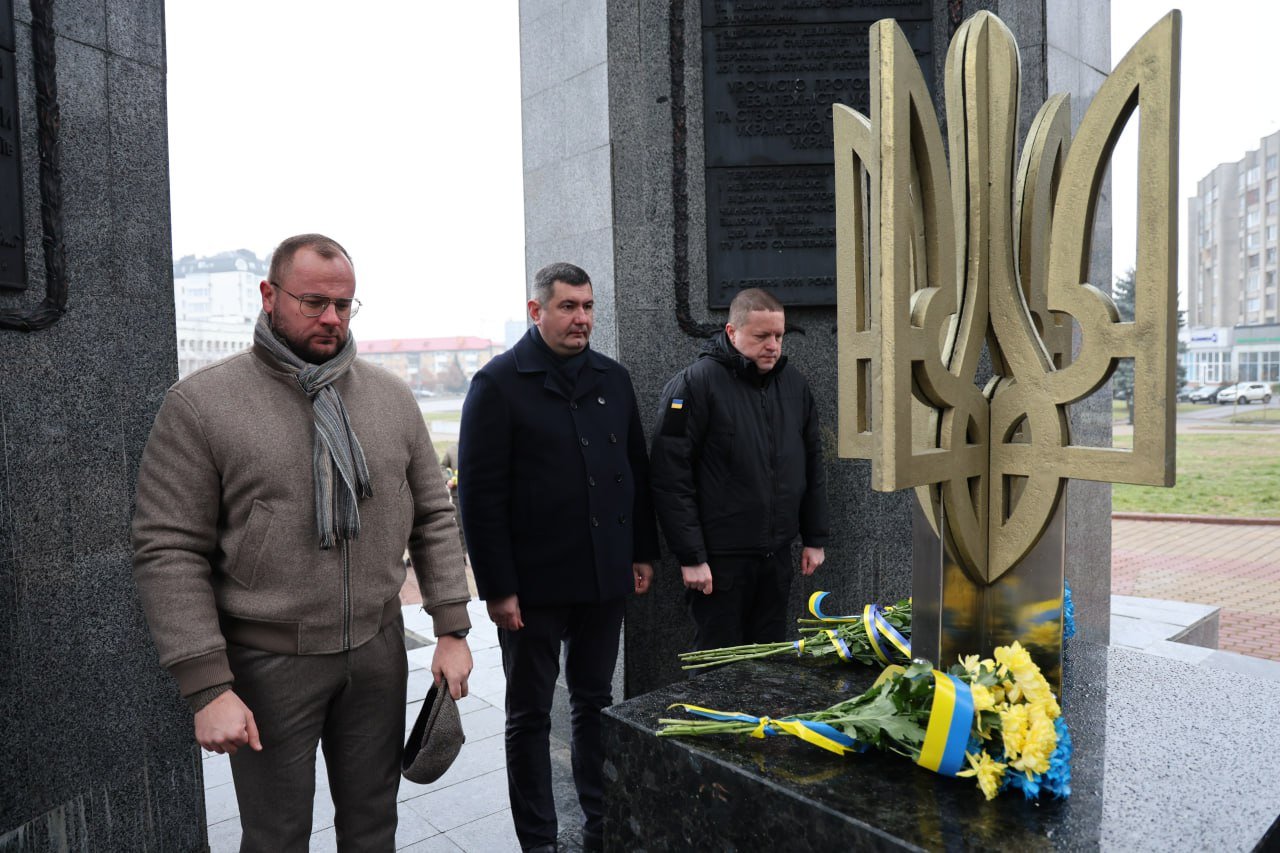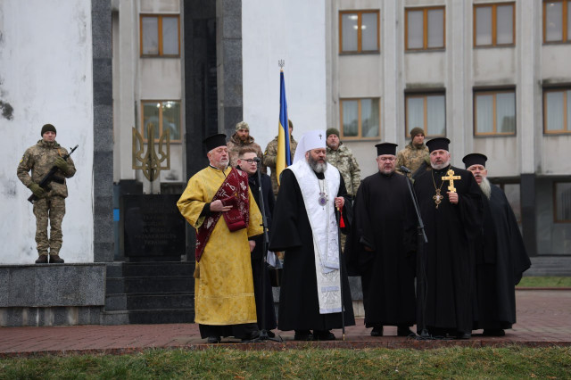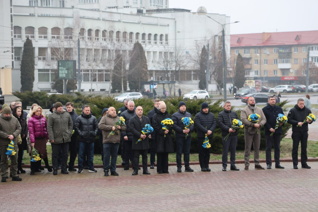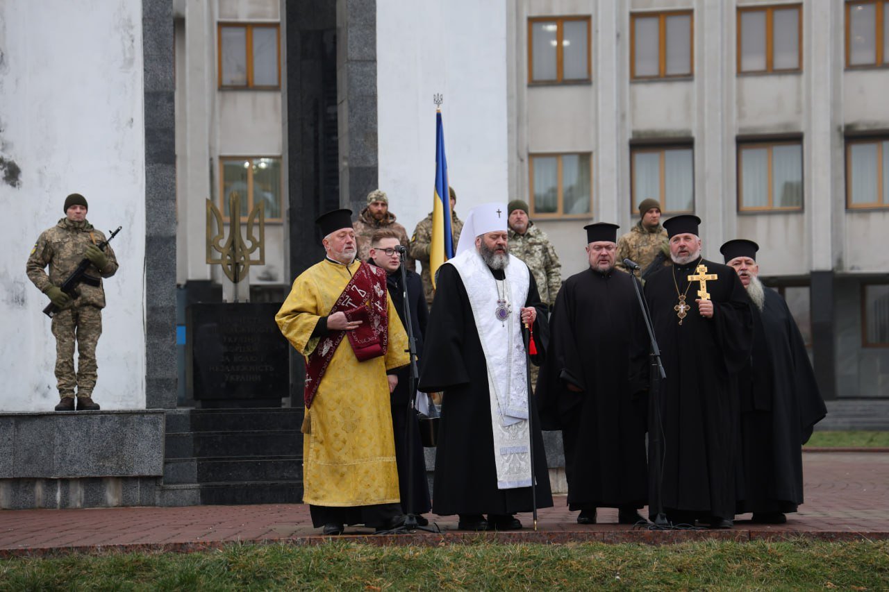 Митрополит Луцький та Волинський Михаїл відслужив молебень за Україну, а присутні поклали квіти до пам’ятного знака «Борцям за волю та незалежність України».