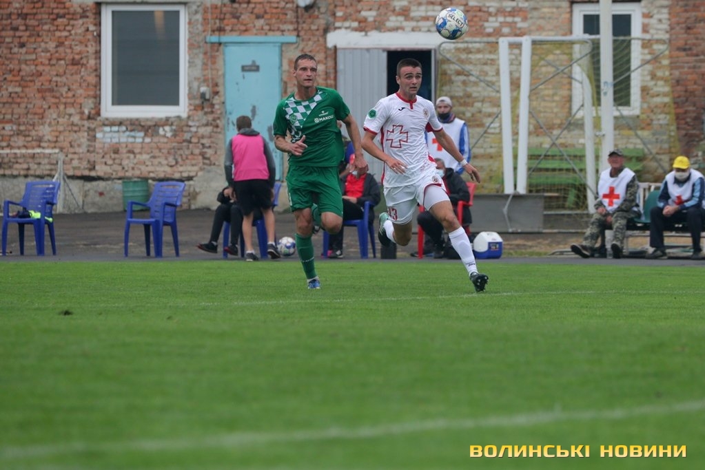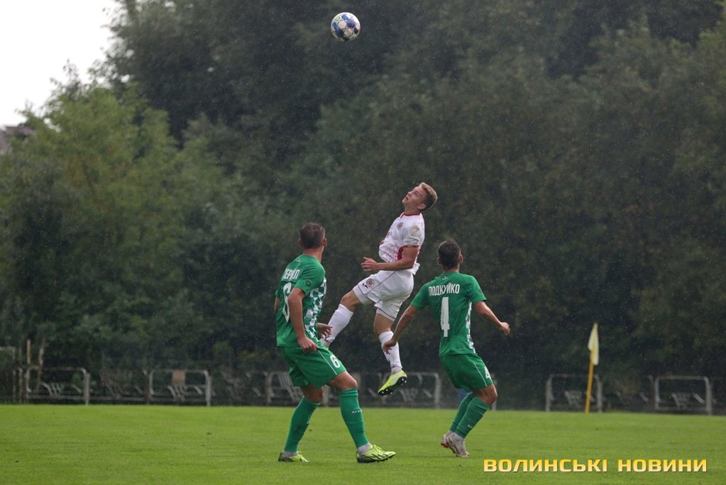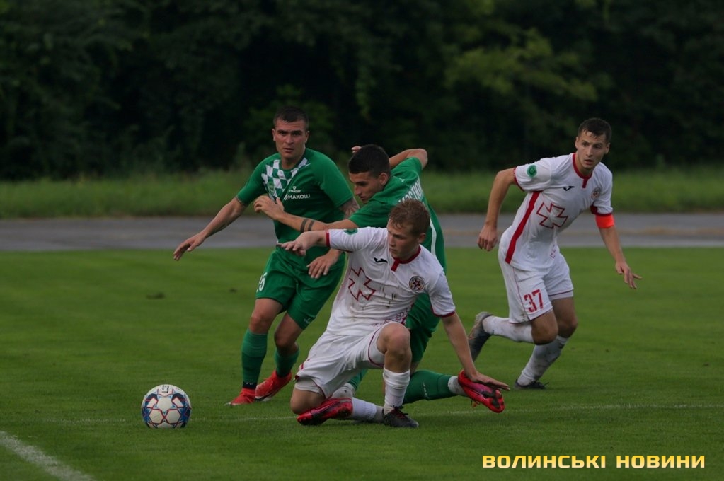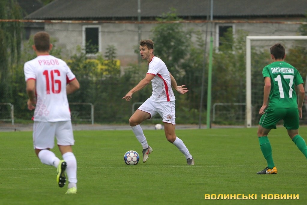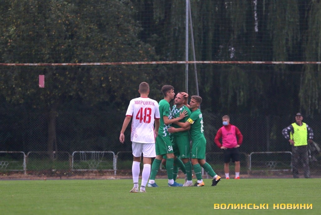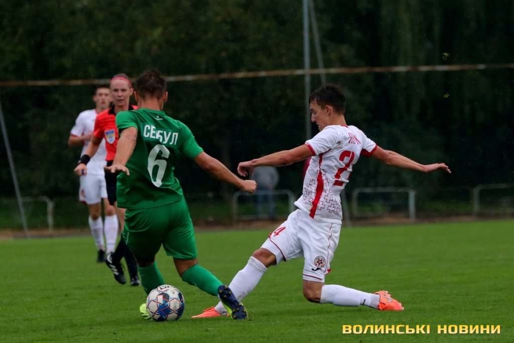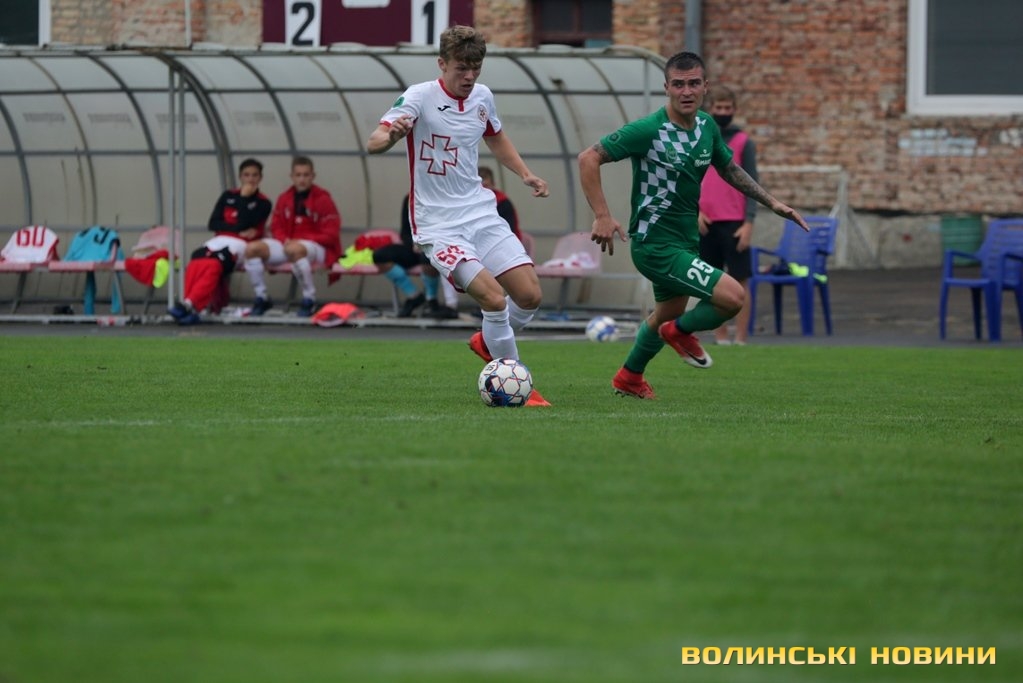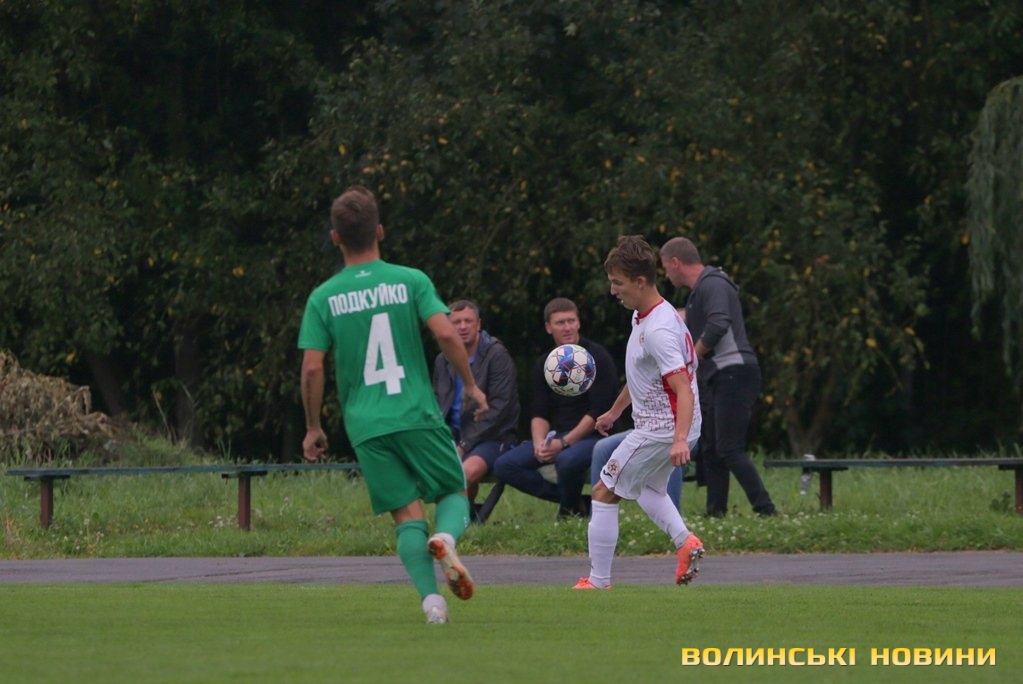 Втім, підопічні Альберта Шахова почали матч не надто впевнено, пропустивши першими – Браславський, вирвавшись на оперативний простір, не зустрів супротиву та пробив у кут воріт з-за меж карного майданчика, відкривши рахунок – 0:1.Попри те, що за «Волинь-2» грали футболісти з першої команди, Василь Сачко спостерігав за грою на протилежній від тренерського містка частині поля та жодним чином не вмішувався у роботу колег.