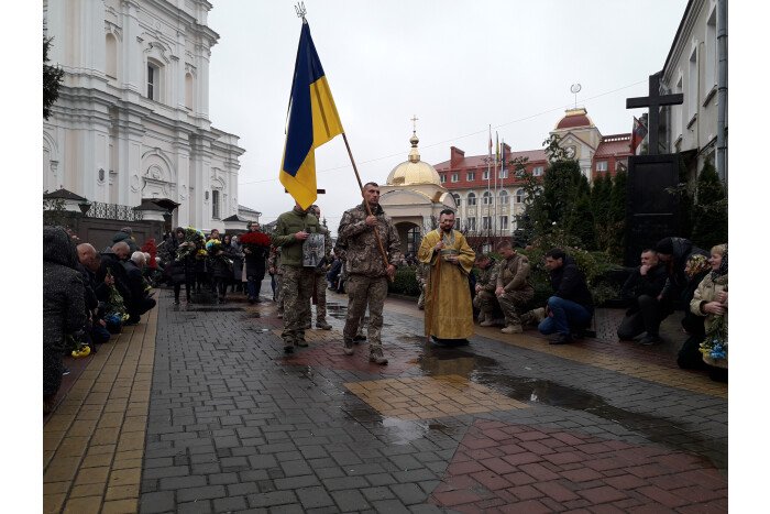 Молилися у храмі й під дощем: у Луцьку попрощалися із загиблим Героєм Денисом Кудрявцевим