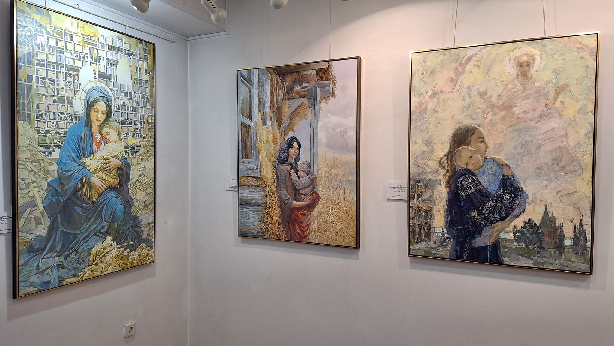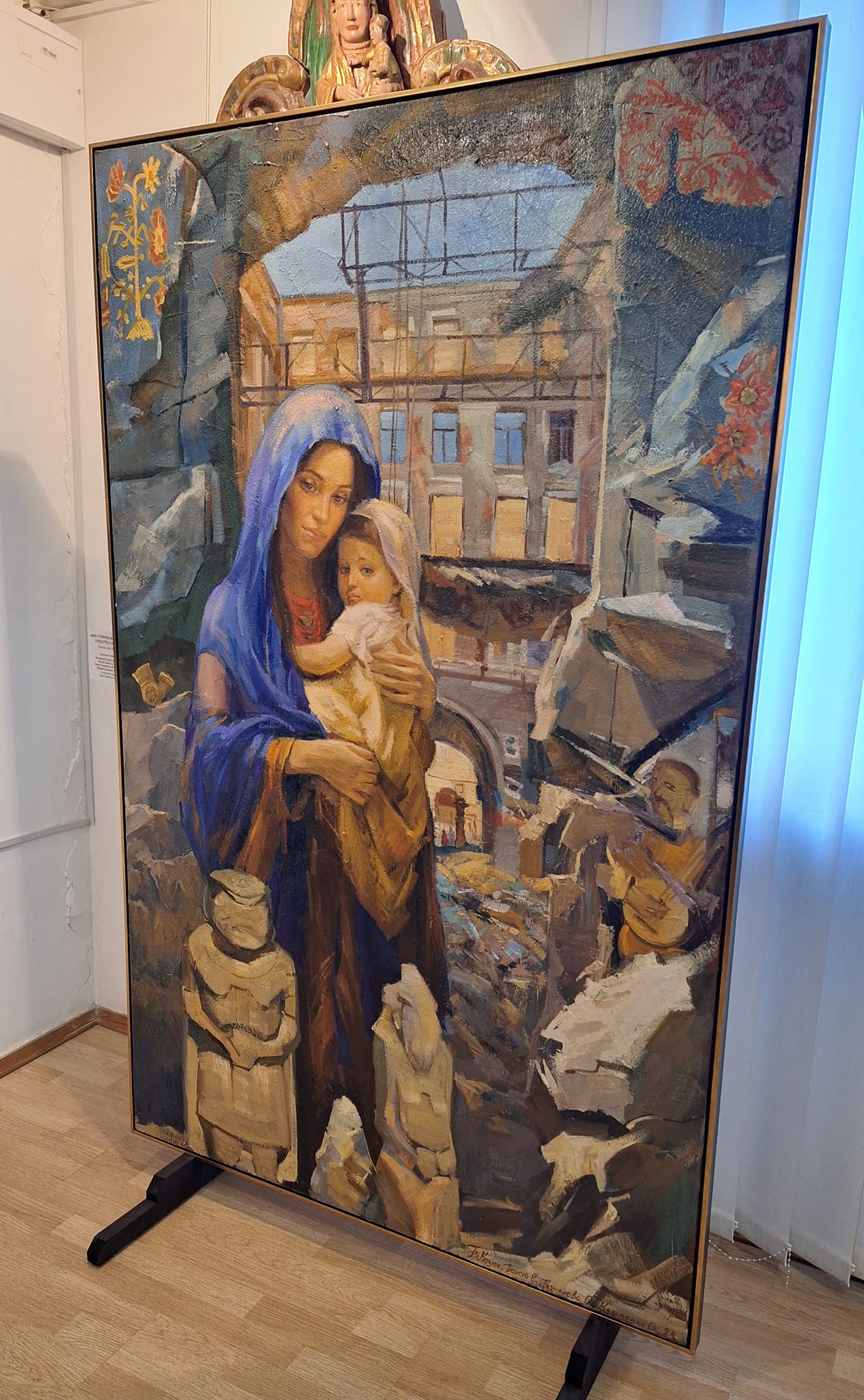 Винятковий за своєю суттю мистецький проєкт представлений 43-ма творами українських художників, головні образи яких– українська Мадонна та сьогодення, спотворене російськими злочинами. «Ми залучили художників з усієї України – Одеси, Харкова, Києва. Свої роботи вони писали під час війни, під атаками бомб і безпілотників, вони пережили втрати рідних, своїх домівок. Їхні історії життя наповнені трагедією. Ці люди – зріз нашої країни. В своїх роботах вони зобразили міста, які найбільше постраждали від війни», – розповів автор ідеї та організатор мистецького проєкту, народний художник України Володимир Козюк.«У музеї Волинської ікони ми бачили різні образи Божої Матері. Це і сувора Божа Матір на картинах Богородиці «Одигітрія», це і любляча, ніжна Матір на іконах Богородиці «Замилування», милосердна – на іконах «Покрови», скорботна – на іконах «Оплакування» та на зображенні розп’яття. Зараз перед нами образ матері, жінки. Образ української Мадонни, Божої Матері втілено на картинах, де зруйновані наші міста, наповнені жалем і болем цілого українського народу», – зазначила директорка музею Тетяна Єлісєєва.