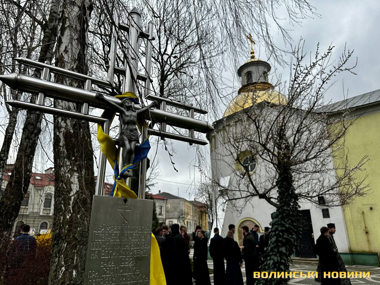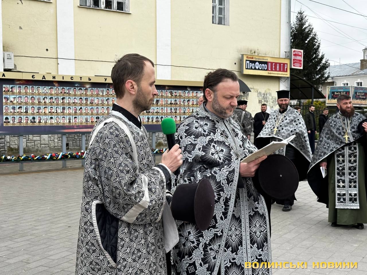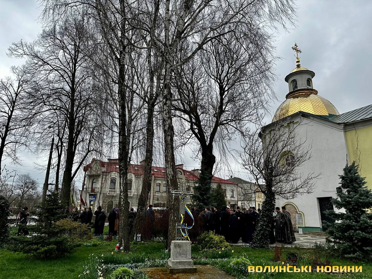 Хресний хід, який зараз ми практикуємо в Луцьку, – це переосмислення найкращих традицій Православної церкви і традицій, які зародилися на Заході. Тобто це і православний Хресний хід, і православні молитви, і хід із 12 зупинками. Це особливе богослужіння. Відбуваються зупинки для того, щоб прочитати певний уривок, присвячений Страстям. До цього уривку підібрано молитви з проханнями, за що ми молимося: за воїнів, за недужих, за тих, хто в полоні, за Батьківщину, за біженців. Ми промовляємо ці молитви, щоби жертва Христа-Спасителя, який віддав своє життя заради усіх нас, зокрема, поширювалася на ті прохання, які є актуальними для нас зараз», – пояснив отець Віталій.Опісля Хресної ходи на території Свято-Троїцького собору звершили чин винесення плащаниці.