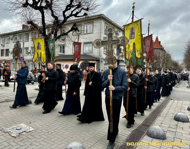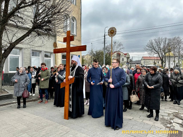 Віряни та священнослужителі напередодні свята Воскресіння Господнього вирушили традиційною Хресною ходою середмістям Луцька. Це Хресний хід із дванадцятьма стояннями, які відображають останні події в земному житті Христа.