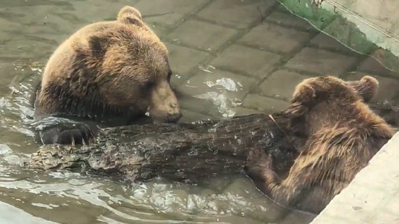 У спеку улюблене місце ведмедів – басейн. У ньому вони полюбляють гратися з колодами.«На першому місці у всіх тварин має бути прохолодна вода, тому її замінюють кілька разів на день: тварини її або випивають, або нагрівається від температури і не хочуть пити», – каже директорка.