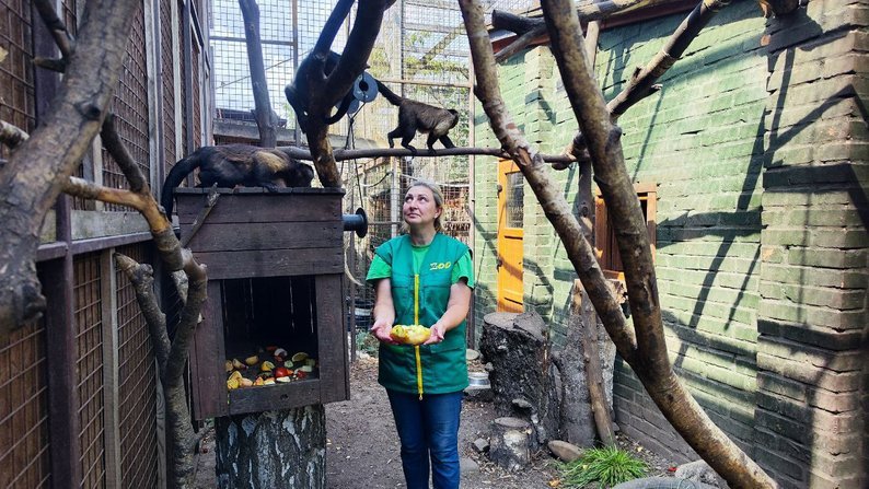 Щоб допомогти деяким тваринам, доглядальники годують їх фруктовим морозивом. Зі слів завідувачки відділу приматів Тетяни Пономарьової, його працівники зоопарку готують самі.