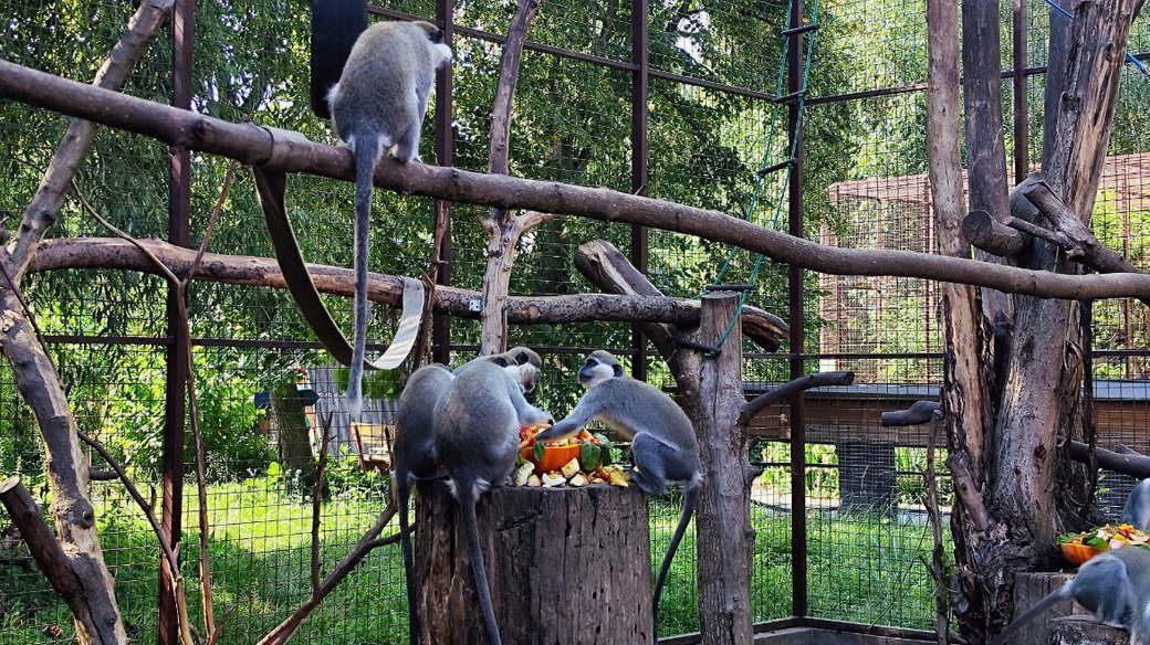 Такі ж ласощі отримують і мавпи.«Під час спекотних днів тварини стають менш рухливі. У цей період вони ховаються в тінь у природі, а в нас у прохолодних будиночках», – додає Тетяна Пономарьова.Як зазначила директорка зоопарку, у кожному вольєрі є тінь, озеленення тут проводять постійно. Також прохолоду на території звіринцю дають природні водойми та високі дерева.Читати ще: У Луцькому зоопарку врятували лелеку з Ковельщини і 68 голубів із Бахмута