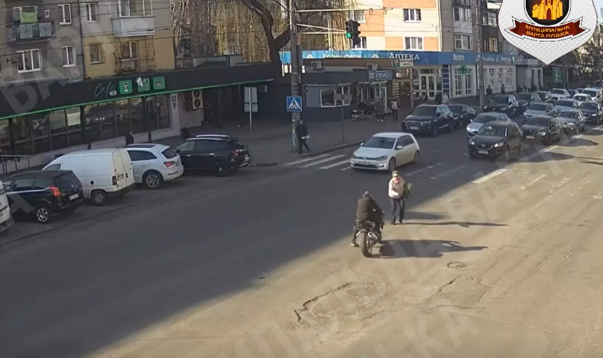 Мотоцикл наїхав на пішохідку: показали момент аварії на Грушевського в Луцьку