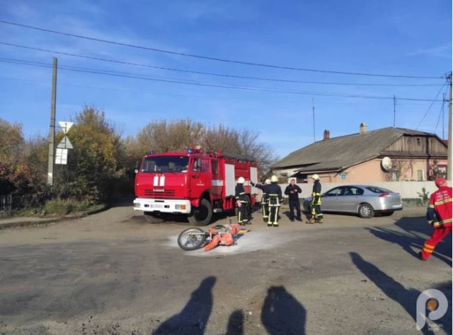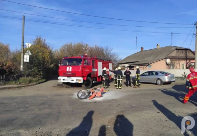 Як прокоментували у відділі поліцейської діяльності міста, зіткнулися мотоцикл та мікроавтобус Mercedes-Benz. Після удару мотоцикл загорівся. Випадкові свідки загасили вогонь вогнегасником.