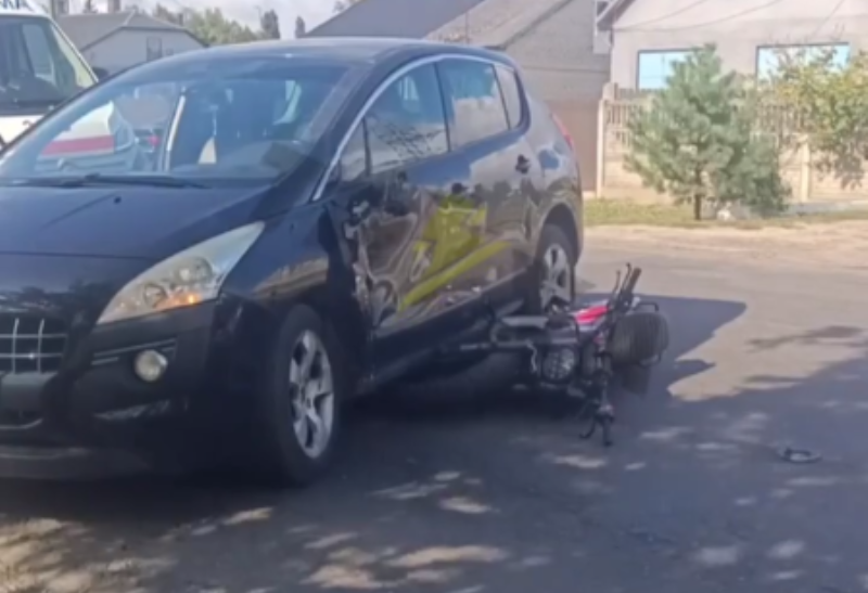 Відомо, що мотоцикліст влетів у авто марки Peugeot. Водій двоколісного травмувався, його оглядають медики швидкої.