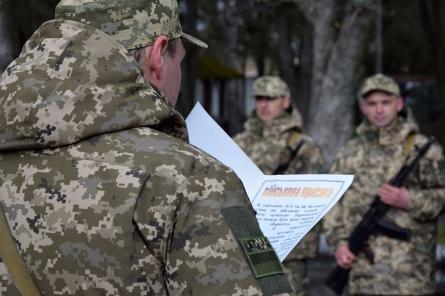«Мої діти захищають Україну, і я також маю бути поряд»: у Луцьку прикордонники-новобранці склали присягу