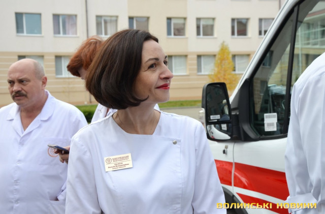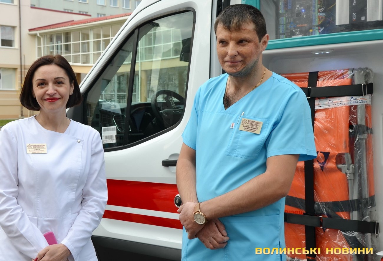 Один із таких автомобілів отримав колектив Волинського обласного територіального медичного об’єднання захисту материнства і дитинства.Міністр охорони здоров’я Віктор Ляшко під час вручення автомобіля з завідувачем відділення анестезіології та реанімації медичного об’єднання захисту материнства і дитинства Іваном Вороблевським