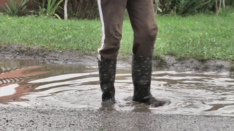 У ямах на дорозі, що утворилися біля будинку Ольги Татушко, плавають качки.