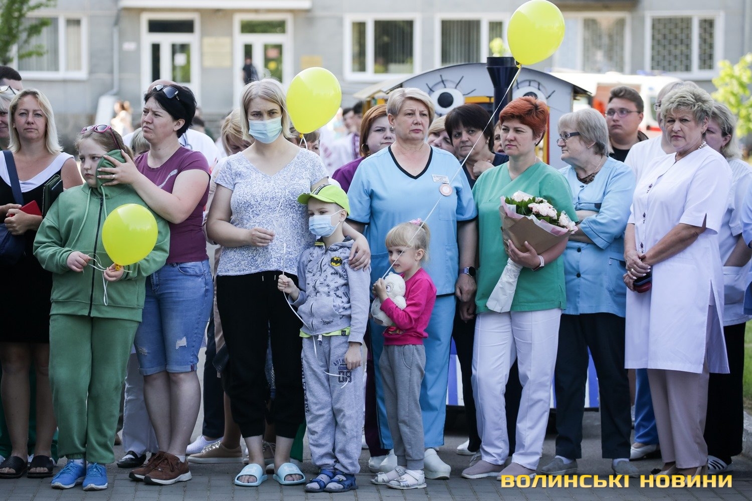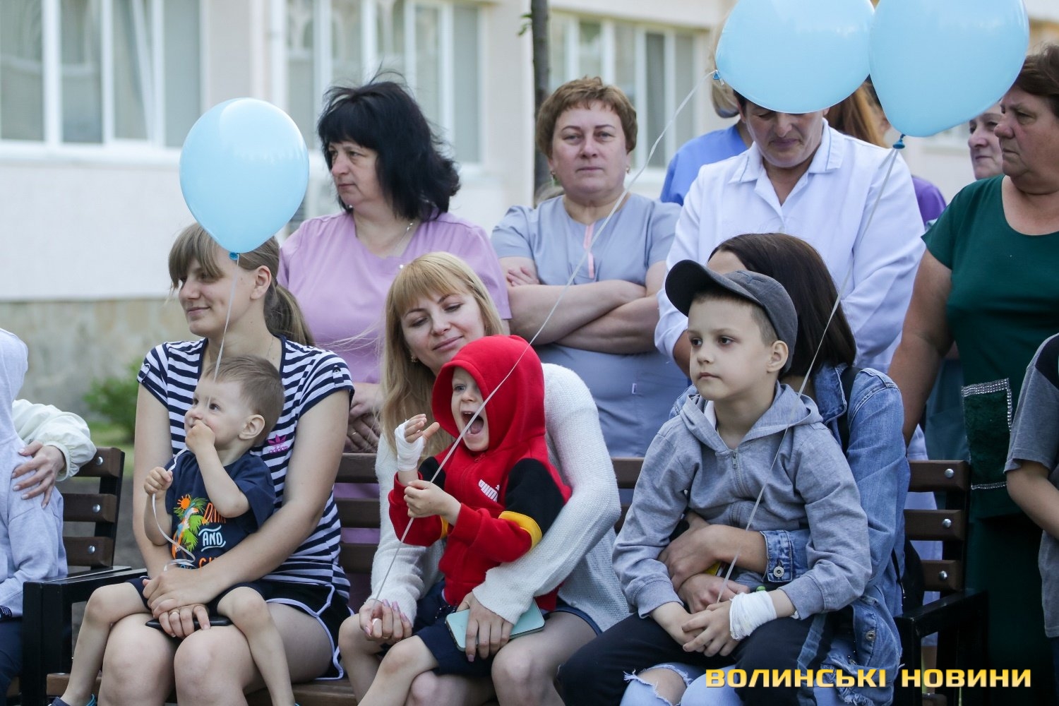 У День захисту дітей Волинське обласне територіальне медичне об’єднання захисту материнства та дитинства влаштувало свято для дітлахів. Поблизу корпусу дитячої обласної лікарні танцювали народні колективи, співали пісень, дарували подарунки та дякували Збройним силам України.