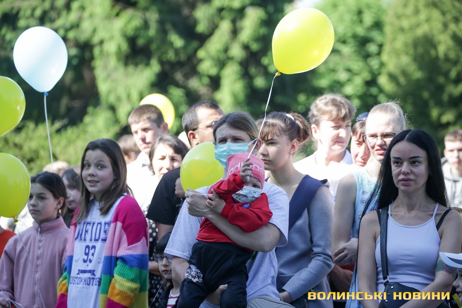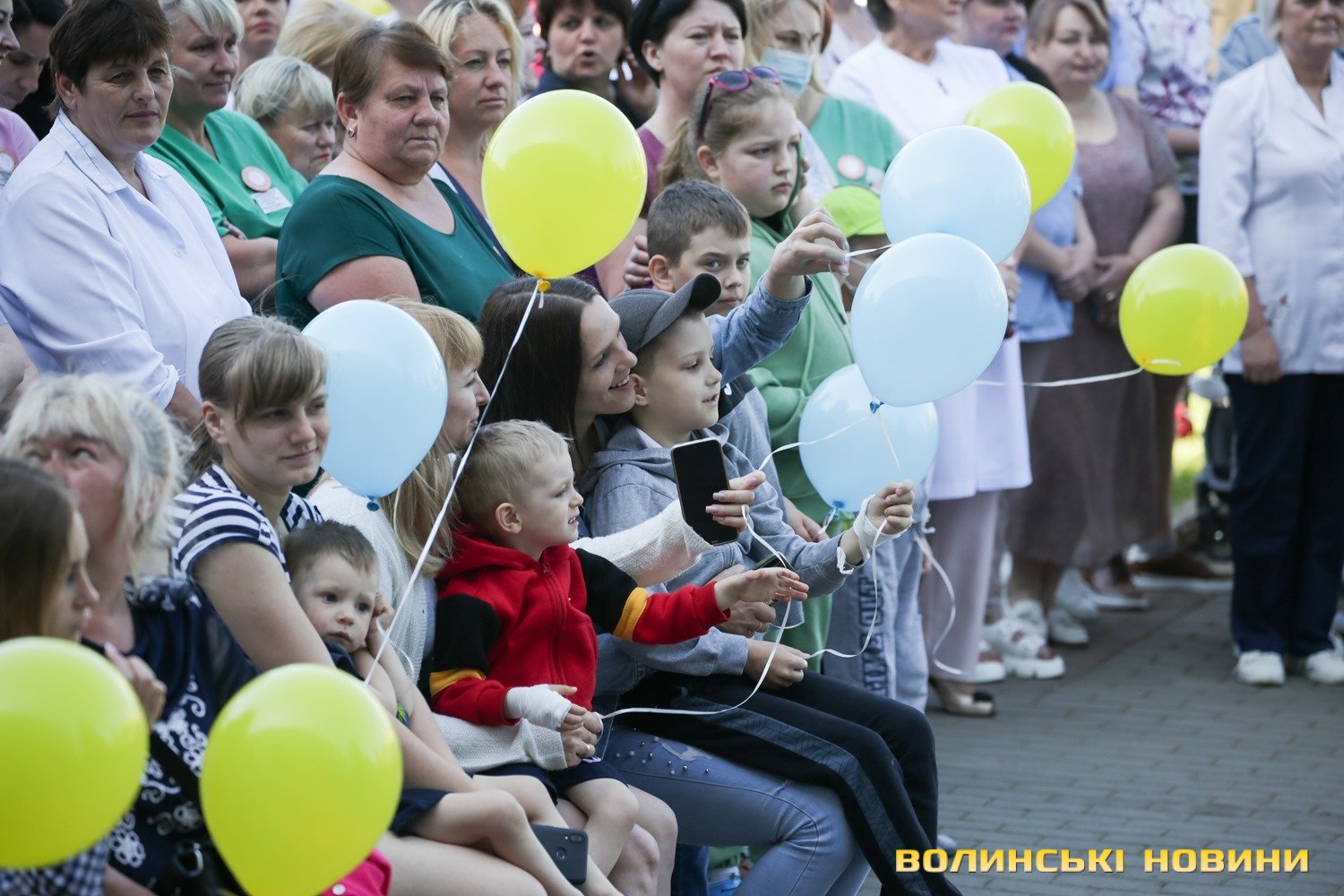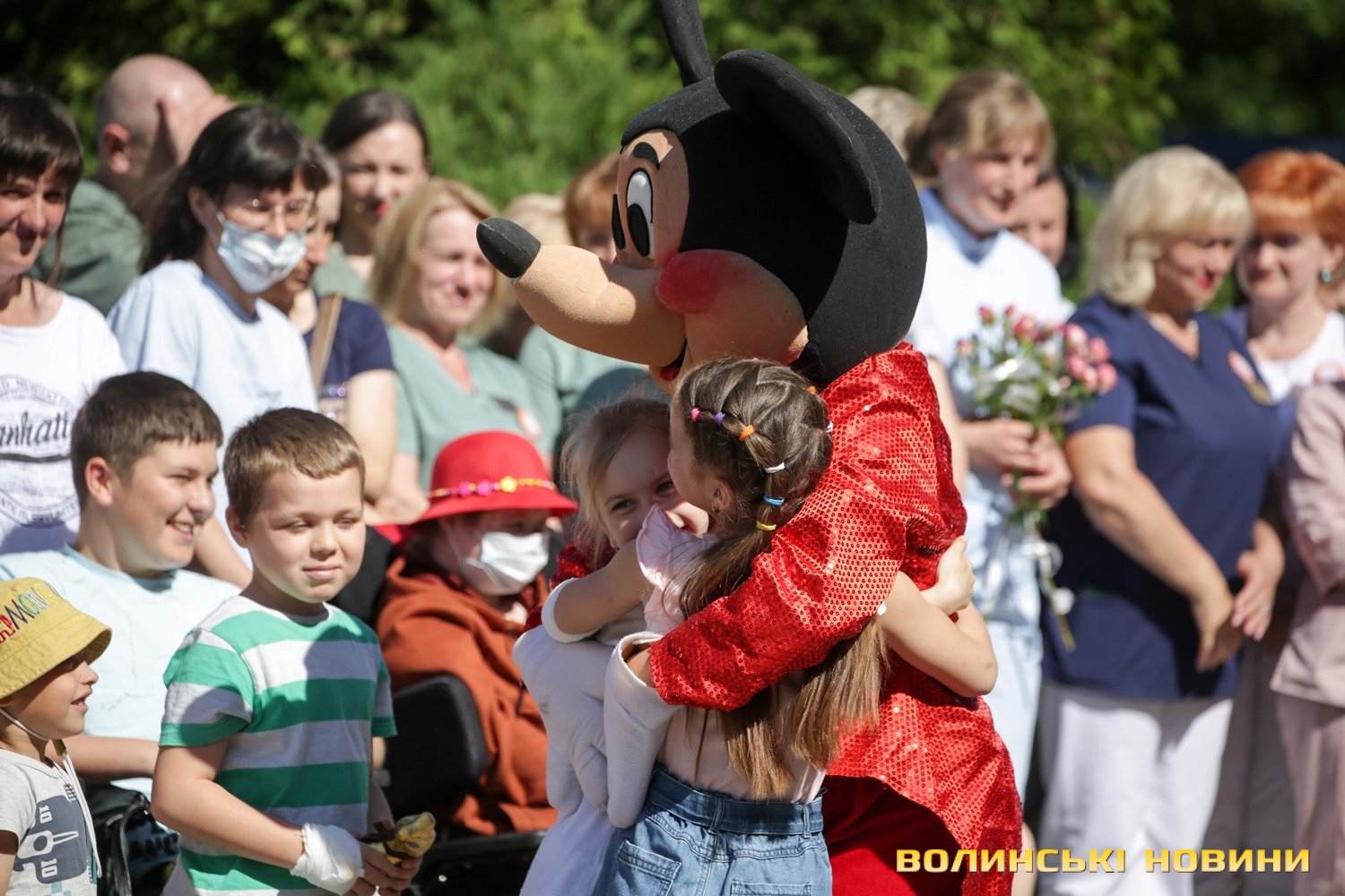 До десятків дітей та їхніх батьків першою з вітаннями звернулася генеральна директорка КП «Волинське обласне територіальне медичне об’єднання захисту материнства та дитинства» Ірина Горавська.«День захисту дітей набув особливого значення. Сьогодні ми відзначаємо його під час повномасштабної війни, тому зараз, як ніколи, діти потребують нашого захисту, захисту дорослих. Вони мають відчувати себе у безпеці, спокої, зростати щасливим, усміхненими. І тоді наше майбутнє буде щасливим та світлим», – зазначила Ірина Горавська.Вона закликала присутніх взятися за руки та подумати про найзаповітнішу мрію. Усі дітки загадали єдине бажання – мир в Україні, відпустивши жовті та блакитні кульки у небо.Вітала дітей також і народна депутатка Ірина Констанкевич, яка зауважила, що нині Україні дуже складно, але вона має світле майбутнє – дітей. Ірина Констанкевич наголосила, що сьогоднішнє свято проводять і для того, щоби подякувати Збройним силам України, які боронять наше майбутнє та ведуть нас до перемоги. Вона також відзначила працю лікарів, які працюють заради дітей щодня.А заступник голови Волинської обласної ради Григорій Пустовіт прибув на свято не з порожніми руками, а з солодощами, які дітям роздавали мультиплікаційні персонажі. Також з нагоди свята він вручив відзнаки дитячим лікарям.А щодо самого дійства, то впродовж заходу для дітей виступали народні колективи, які показували хореографічні номери, також діти співали пісень та розказували вірші.