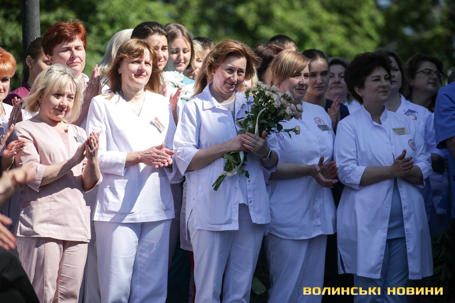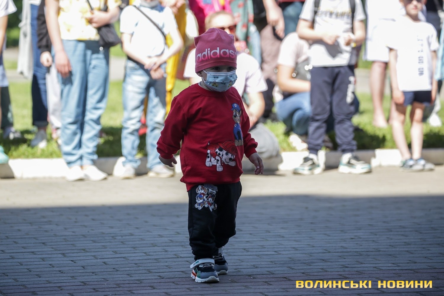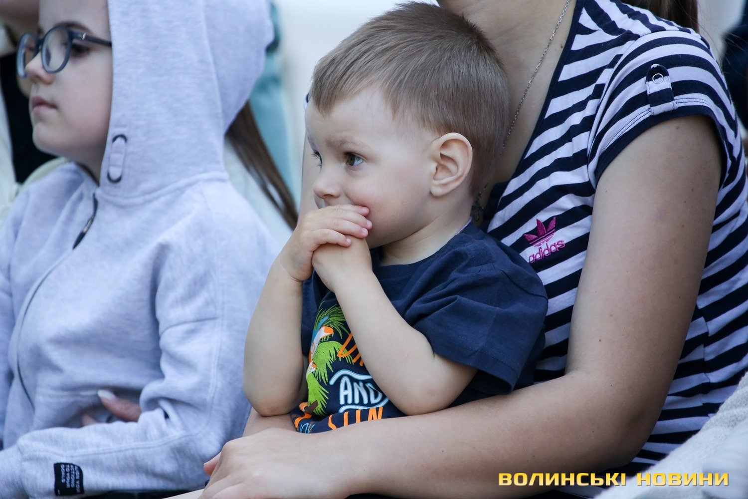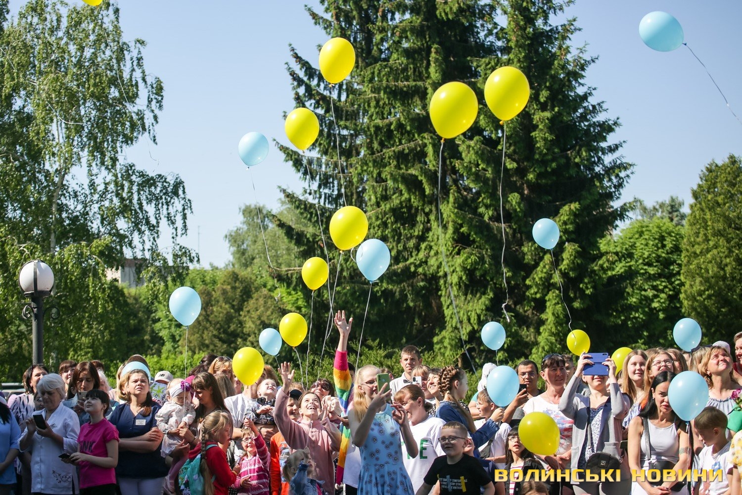 До десятків дітей та їхніх батьків першою з вітаннями звернулася генеральна директорка КП «Волинське обласне територіальне медичне об’єднання захисту материнства та дитинства» Ірина Горавська.«День захисту дітей набув особливого значення. Сьогодні ми відзначаємо його під час повномасштабної війни, тому зараз, як ніколи, діти потребують нашого захисту, захисту дорослих. Вони мають відчувати себе у безпеці, спокої, зростати щасливим, усміхненими. І тоді наше майбутнє буде щасливим та світлим», – зазначила Ірина Горавська.Вона закликала присутніх взятися за руки та подумати про найзаповітнішу мрію. Усі дітки загадали єдине бажання – мир в Україні, відпустивши жовті та блакитні кульки у небо.Вітала дітей також і народна депутатка Ірина Констанкевич, яка зауважила, що нині Україні дуже складно, але вона має світле майбутнє – дітей. Ірина Констанкевич наголосила, що сьогоднішнє свято проводять і для того, щоби подякувати Збройним силам України, які боронять наше майбутнє та ведуть нас до перемоги. Вона також відзначила працю лікарів, які працюють заради дітей щодня.А заступник голови Волинської обласної ради Григорій Пустовіт прибув на свято не з порожніми руками, а з солодощами, які дітям роздавали мультиплікаційні персонажі. Також з нагоди свята він вручив відзнаки дитячим лікарям.А щодо самого дійства, то впродовж заходу для дітей виступали народні колективи, які показували хореографічні номери, також діти співали пісень та розказували вірші.