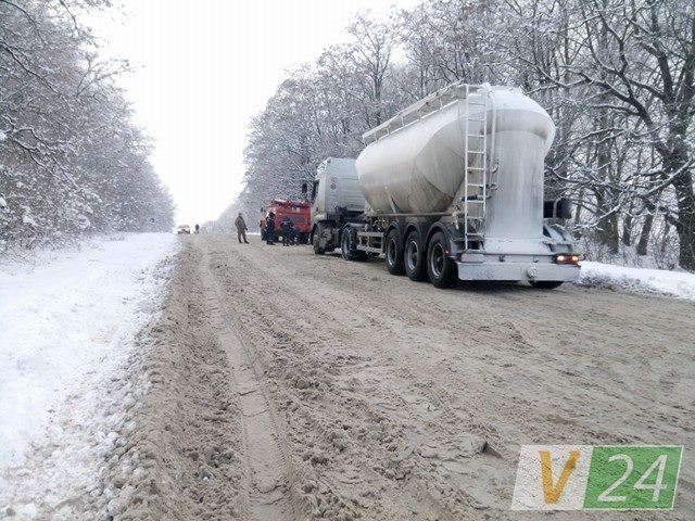 На трасі "Володимир-Волинський - Нововолинськ" утворився затор через фуру, яка перевозила борошно.