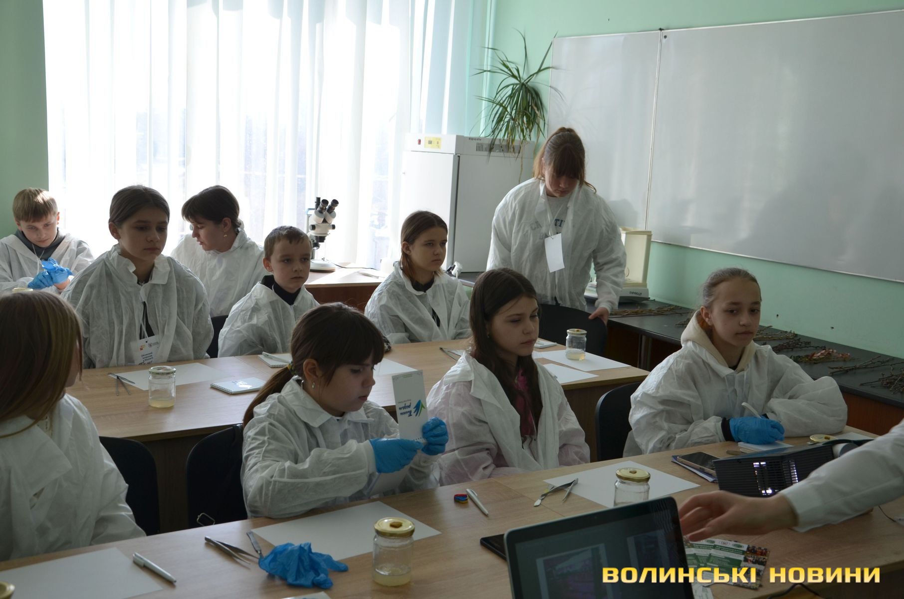 Упродовж дня діти мали кілька практичних занять, ознайомилися із аудиторіями вишу, відвідали кафедри і музей зоології. Для юних науковців такі заняття дають нові знання і стимул до розвитку у сфері біології.Читати ще: Вистава про правила на дорозі: у Луцьку триває просвітницький проєкт для першокласників. Фото