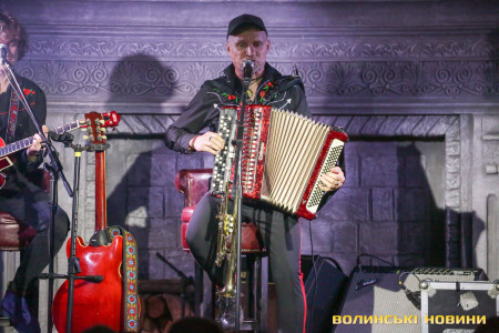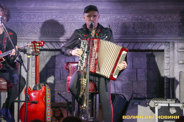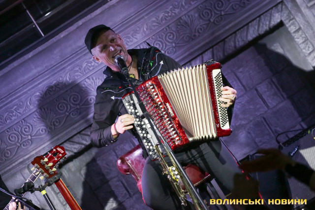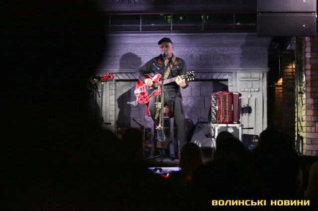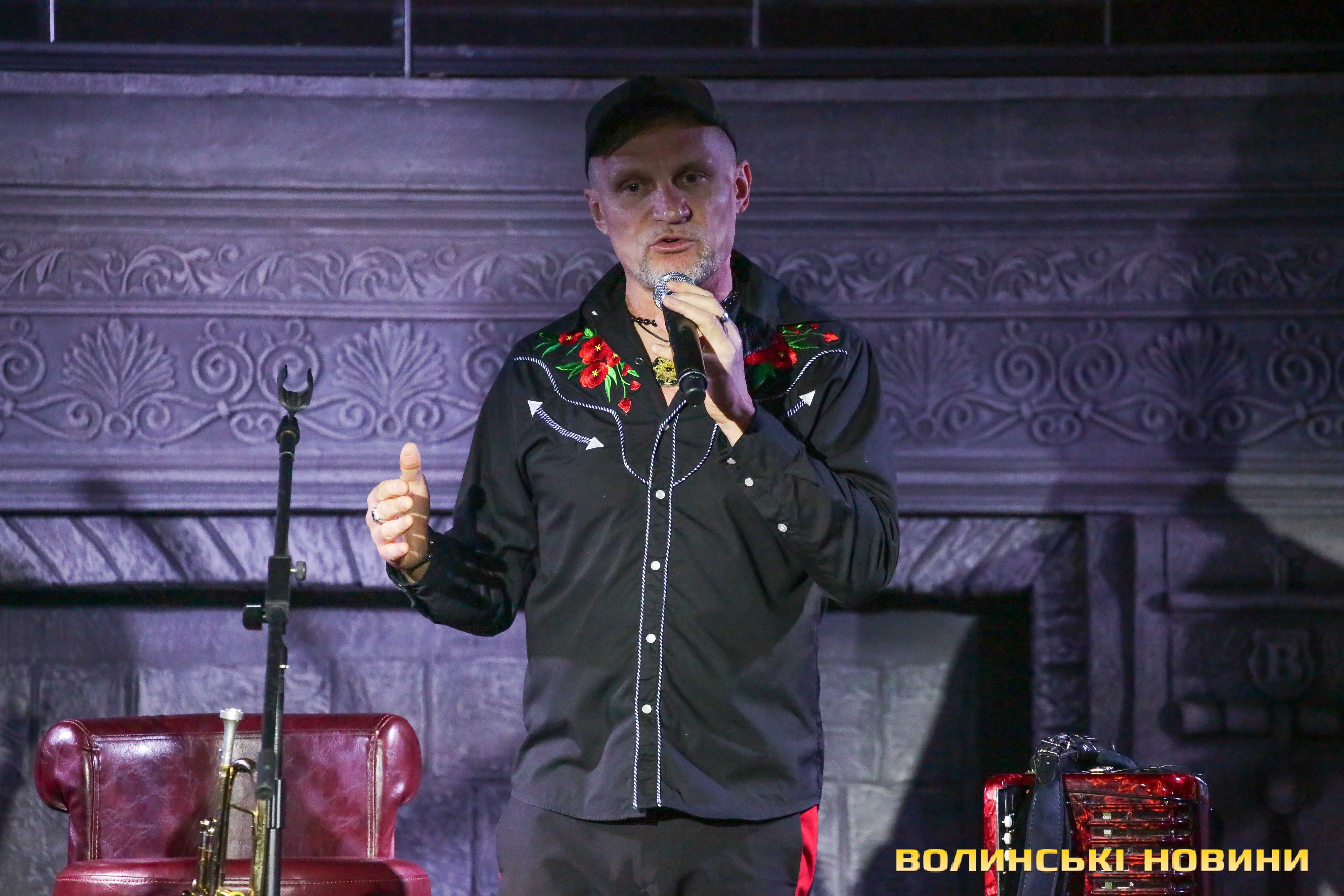Легендарний фронтмен гурту Воплі Відоплясова Олег Скрипка відіграв в обласному центрі Волині авторський вечір, впродовж якого збирав гроші для воїнів Збройних сил України.