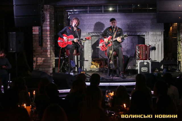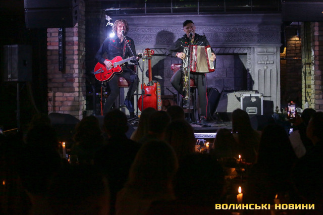 «У вас дуже тепла атмосфера. Це авторський вечір, тому накопичуйте ваші емоції. Коли мені запропонували виступити у вас, я подумав, як це бути одному перед такою прекрасною аудиторією. Тому запропонував Сашку Лозовському, аби він приєднався до мене. У нас з ним вже така військова корпорація. Зараз ми робимо з ним дуже багато концертів. З початку повномасштабної війни ми зіграли до сотні благодійних концертів, зокрема за кордоном. Я довго думав, що вам зіграти, але музичну розмову з вами я почну зі старовинного романсу «Не питай, чому в мене заплакані очі», – сказав музикант.Далі він надав слово Олександру Лозовському, який є не лише прекрасним музикантом, а й чудовим автором. Для артиста це було дещо неочікувано, але він зіграв пісню, яку присвятив Луцьку.Відзначимо, що впродовж концерту Олег Скрипка виконував найвідоміші свої треки, чимало з яких і зараз актуальні.