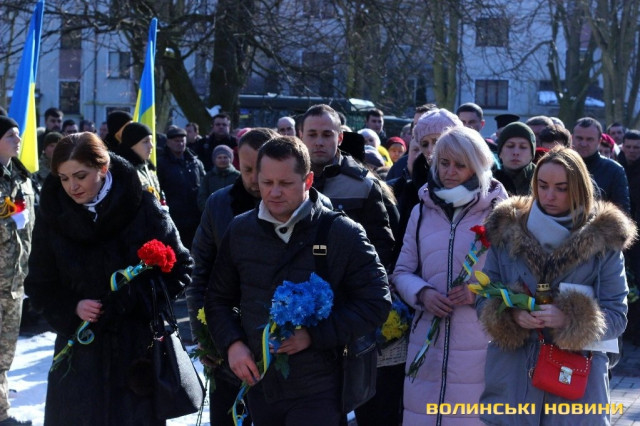 Захід за участю політиків, громадських діячів, майданівців, які прийшли віддати шану загиблим побратимам, відбувся у Луцьку 20 лютого.
