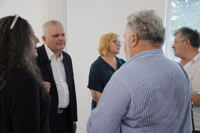 У галереї мистецтв Волинської організації Національної спілки художників України стартувала серія виставок скульптури і медіа-мистецтва, яку представили викладачі Академії образотворчих мистецтв імені Євгеніуша Гепперта у Вроцлаві. У великій залі експонується збірна виставка «Точка зору», у Малій залі представлені два персональні проєкти «Острів» Анни Буяк і «Поміж» Міхала Пєтшака. Заплановані ще дві персональні виставки «Персона» Маріуша Косіби і «Вироби» Олени Матошнюк протягом липня в галереї спілки, а також презентації в Рівному і Тернополі.Лучани стали першими українськими глядачами творів польських педагогів новоутвореного факультету Академії образотворчих мистецтв, які експериментують у двох просторах – фізичному і цифровому. Як влучно висловився його очільник і куратор виставки «Точка зору» Маріуш Косіба, автори «різьбили» у двох просторах різними засобами. У вивченні їхньої взаємодії відбувався експеримент, справжня пригода, а роботи утворили збірну виставку «Точка зору» про різноманіття персональних думок, ідей в єдності творчого досвіду.«Родзинкою» двох персональних проєктів «Острів» і «Поміж» у малій залі став ефект спільного простору, в якому органічно поєдналися роботи Анни Буяк і Міхала Пєтшака. Кожен з них мав уявлення про творчі практики іншого й певні очікування, але до вирішального моменту монтажу в малій залі алереї спілки не бачив конкретних творів. Автори задоволені отриманим результатом і запрошують луцьких шанувальників сучасного мистецтва оцінити взаємодію їхніх проєктів.Представляючи польських колег на презентації 10 липня, голова ВО НСХУ Володимир Марчук зауважив, що це вже третя виставка митців Академії образотворчих мистецтв Вроцлава у Луцьку. Учасників події привітала віцеконсул Генерального Консульства РП у Луцьку Марія Каліновська.Спеціально на цю виставку з Рівного приїхав художник, скульптор Петро Подолець, який запросив польських митців до свого міста. Завідувачка кафедри образотворчого мистецтва Волинського національного університету імені Лесі Українки Ольга Каленюк розповіла про зацікавленість у налагодженні контактів з колегами академії для спільних проєктів викладачів і студентів. До слова, в академії у Вроцлаві навчається багато української молоді.У Марії Вронської, продекана факультету скульптури і медіа-мистецтв академії, склалися теплі враження про наше місто, якими вона поділилася з гостями події. Як і Вроцлав, Луцьк має туристичне гасло про приємне відкриття, яке в повній мірі виправдало очікування польської гості. Педагоги з Вроцлава відвідали найцікавіші луцькі локації – замок Любарта, музей сучасного українського мистецтва Корсаків, будинок-вернісаж скульптора Миколи Голованя, а також тепло поспілкувалися з колегами, старими і новими друзями, першими глядачами виставки.Луцька публіка прихильно та емоційно реагувала на представлені твори – глядачі жваво обмінювалися враженнями, багато фотографували, спілкувалися з авторами. «Цікаво спостерігати, спілкуватись, коментувати. Дуже сучасно і навіть незвично, неочікувано», – поділилася враженнями у соцмережі волинська мисткиня Олена Бурдаш. Художниця Світлана Костукевич теж зауважила незвичність робіт польських колег для українських, яка, на її думку, поглибилася із вимушеною паузою, с