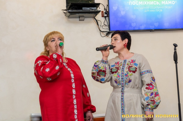 «Так приємно, що в цьому світі ще хтось щось для нас робить просто так, без грошей, не вимагаючи нічого натомість, – каже Алла. – Ми сьогодні – немов Попелюшки, які зібралися на бал. Ці сукні, візаж… Для нас, жінок із зраненими душами, це немов промінчик світла».Цього дня на адресу матерів героїв лунали найщиріші слова, для них звучали чудові пісні. Мало того, неабиякий сюрприз для всіх присутніх приготували й самі мами, виконавши щемливу пісню, яку напередодні записали на студії Сергія Скулинця.«Я радо запрошую вас усіх до себе на студію, – сказав шоумен. – Приходьте, ми з вами поспіваємо, вип’ємо чаю чи кави. Не вмієте співати – приходьте як група підтримки! Це теж дуже важливо – підтримувати тих, хто хвилюється, працюючи у студії вперше».«Дуже хочеться, аби сьогоднішнє свято подарувало вам радість. Бо від кожної з вас я відчуваю неймовірне тепло, – хвилюючись, зазначила Василина Сидорчук (Вітовщик). – Хочу, щоб ви почувалися щасливими і щоб наш проєкт тривав і розростався й наступного року здобув куди більших масштабів».Цього дня було чимало сліз. Але – не гірких, радше це були сльози втіхи та вдячності.«У кожної з нас є день, який змінив, розділив наші життя на до і після. Був період, коли ми закривалися від світу. Мені, наприклад, нічого не хотілося, я нікуди не ходила, настільки було боляче і важко. Я навіть не стерла із телефона номер сина, у мене є його останнє повідомлення: «Мамуль, вітаю з Днем матері»… – звернулася до присутніх мати Героя Людмила Камінська. – Дякую усім, хто зробив нам це свято. Ви хотіли, щоб нам було сьогодні тепло. То хочу сказати: нам спекотно від ваших теплих слів та подарунків. Ми посміхаємось, можливо, через сльози та сум, але йдемо додому щасливими та з купою подарунків і приємних спогадів про цей день».На прощання усі гуртом заспівали «Червону руту», а потому всі мами мали нагоду зробити світлини на згадку про цей емоційний день.