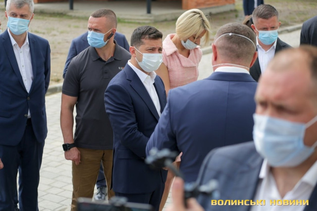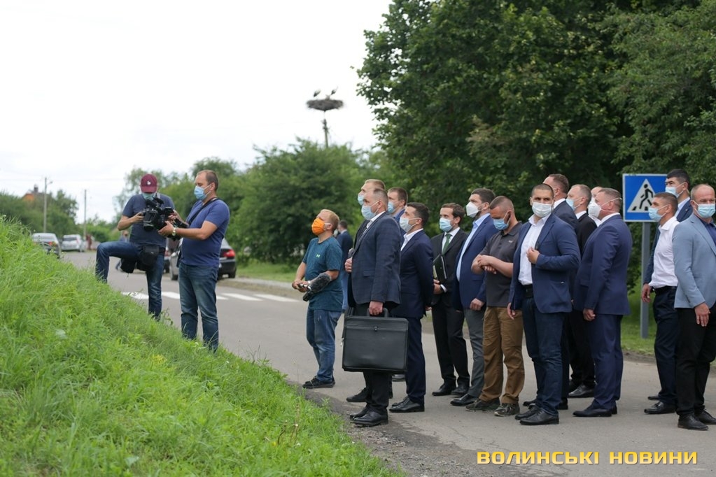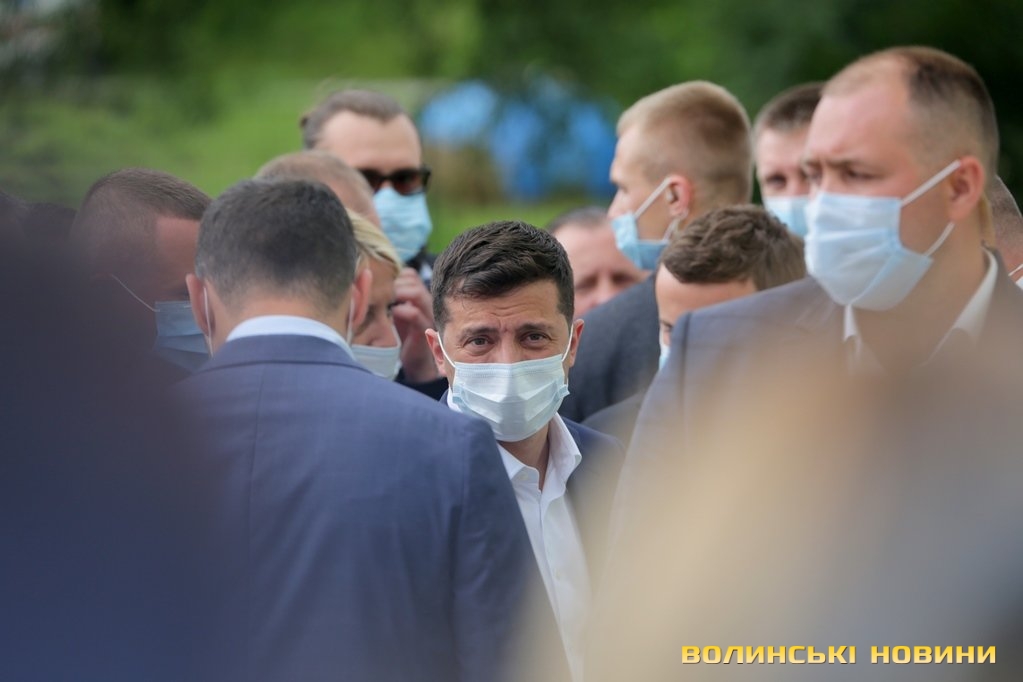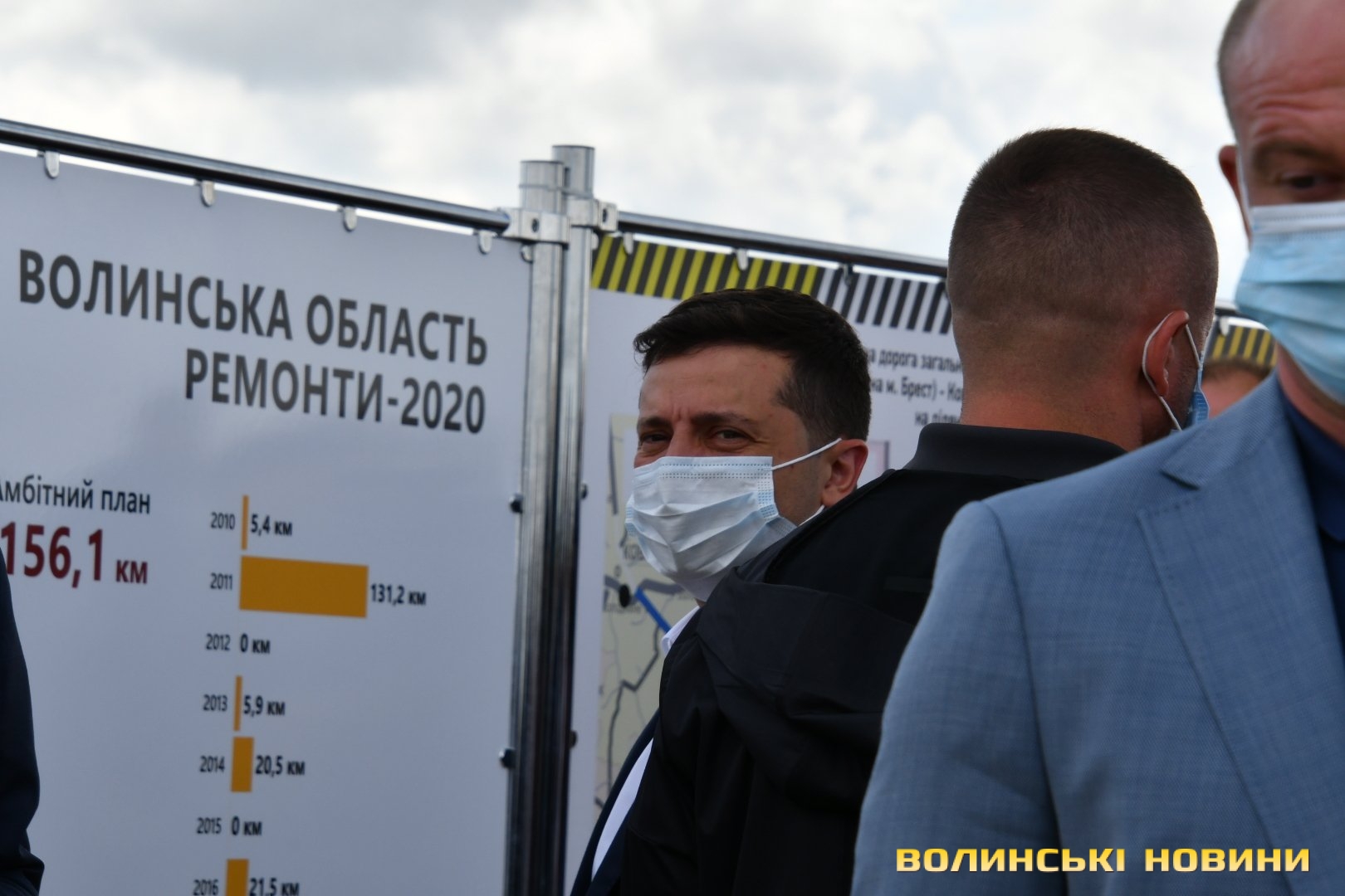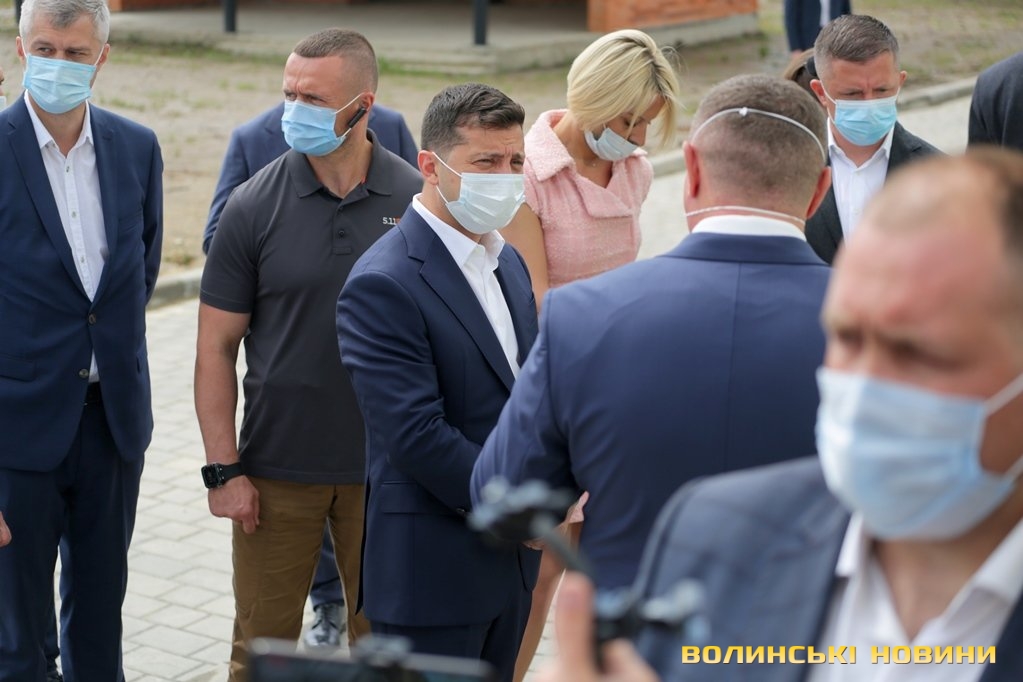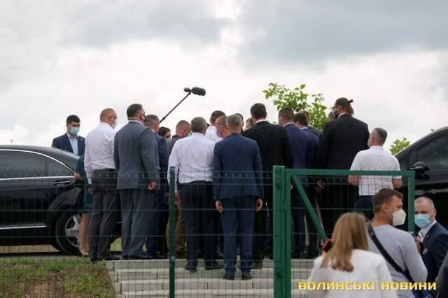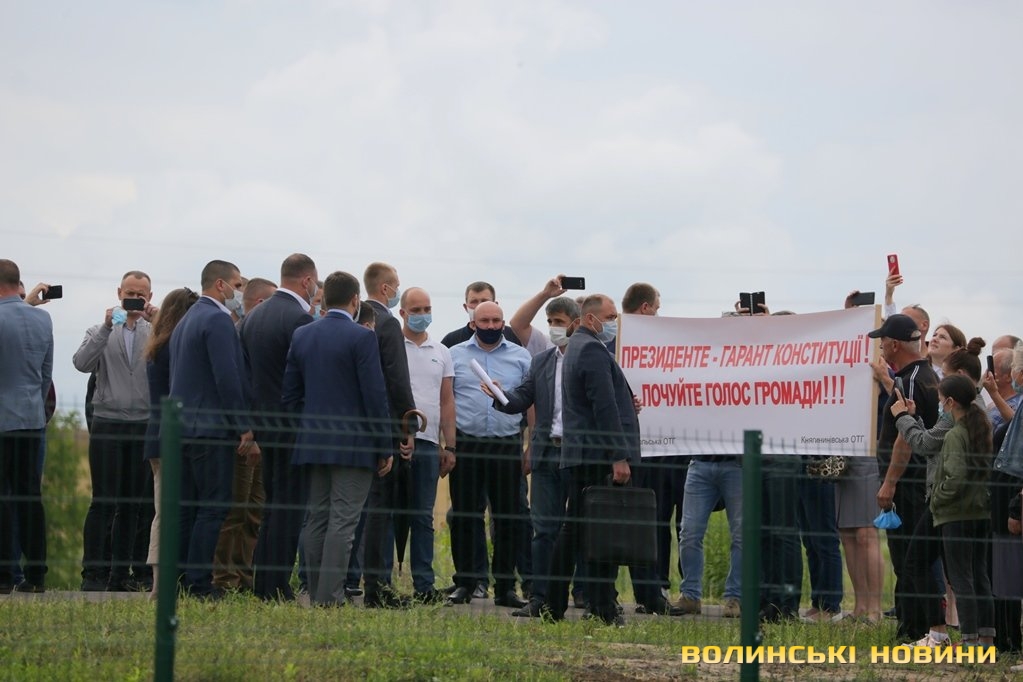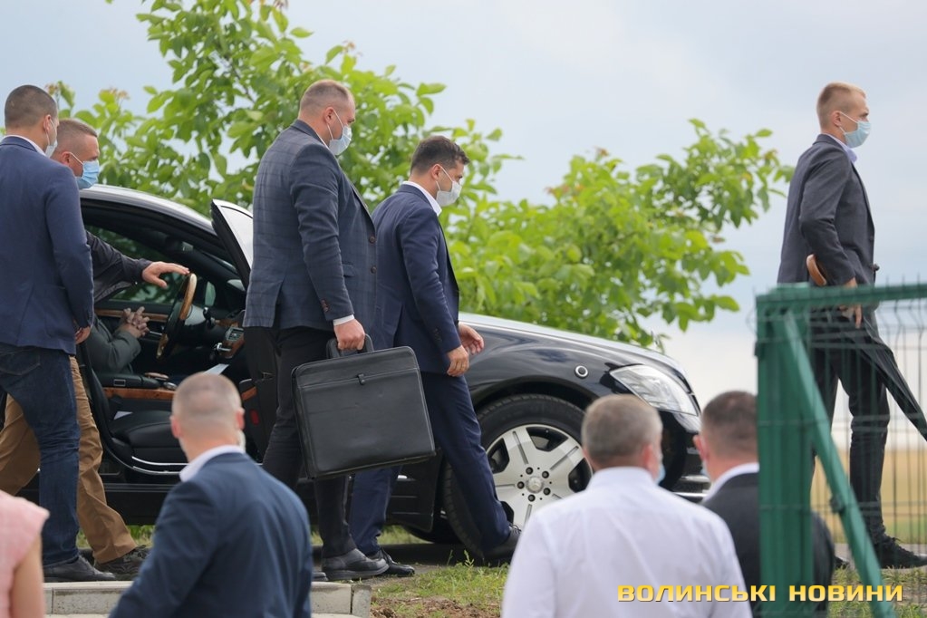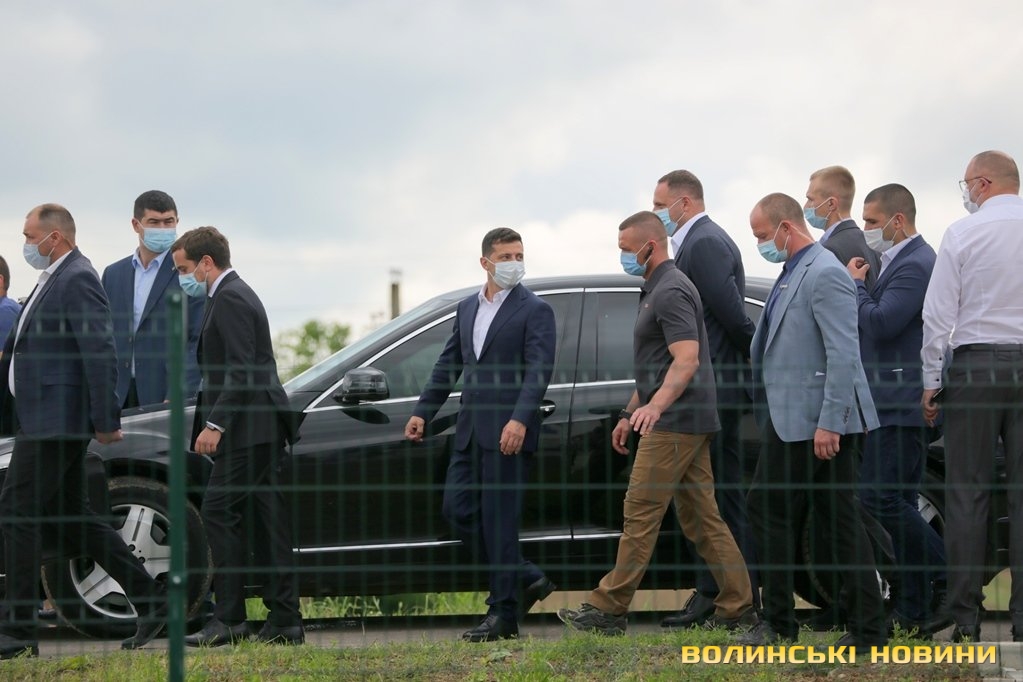 О 10.40 літак з Володимиром Зеленським приземлився в Луцьку, і він одразу поїхав оглядати ремонт дороги поблизу села Дачне.Главі держави доповіли, що цього року завершать ремонт об’їзної дороги навколо Луцька, а 31 липня відкриють першу ділянку цього автошляху. Очільник Укравтодору повідомив, що в області цього року планували добудувати 156 км доріг державного значення, однак зможуть збільшити цю цифру до двохсот. Цьогоріч у регіоні планується побудувати 91 кілометр доріг місцевого значення та 47 кілометрів комунальних автошляхів. У цілому буде 330-350 кілометрів доріг.«Це прекрасний результат. Дай бог, щоб ми в цьому році все це зробили», – наголосив президент.Натомість у селі Крупа в цей час лише очікували президента, готуючись до його приїзду. На периметрі довкола дитячого садка розташовувалися поліцейські автомобілі, а місцеві жителі збиралися на меморіалі, який розміщений на горбку, сподіваючись хоч здалеку побачити президента. Цікаво, що біля самого дитсадка з невеличкого натовпу промайнув банер «Президент – гарант конституції, почуйте голос громади».Нарешті після огляду та температурного скринінгу на територію дитсадка запустили пресу. Журналістів змусили стати в одну точку та не виходити за намальовану крейдою лінію, поки президент огляне дитсадок, при цьому наголосивши, що фотографувати та знімати висадку та посадку Зеленського не можна, мовляв, службова інформація.Президент приїхав на кортежі з трьох автівок та, вийшовши з люксового Мерседеса, попрямував до натовпу людей. Як з’ясувалося, Володимира Зеленського зустріли жителі Заборольської та Княгининівської ОТГ, які не хочуть до Луцька. Про що говорили – достеменно не відомо, адже журналісти мусили стояти в одному місці. Але, поспілкувавшись кілька хвилин з людьми, президент ще кільканадцять секунд щось невдоволено розповідав, активно жестикулюючи, голові ОДА Юрію Погуляйку та першому заступнику керівника Офісу президента Сергію Трофімову.Тут же його зустріли забудовник Андрій Разумовський та заступниця голови ОДА Тетяна Щербак. «Всім доброго дня, здоров'я бажаю», – привітав президент журналістів старим військовим вітанням.