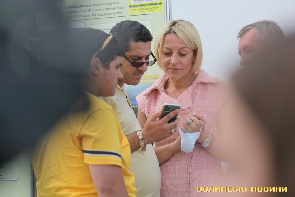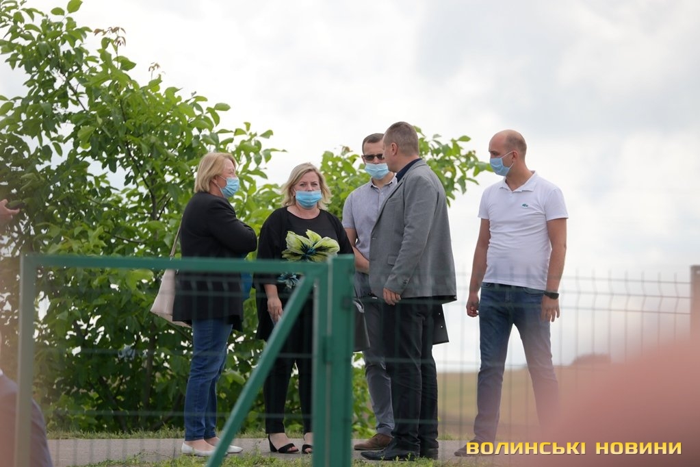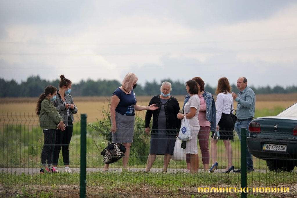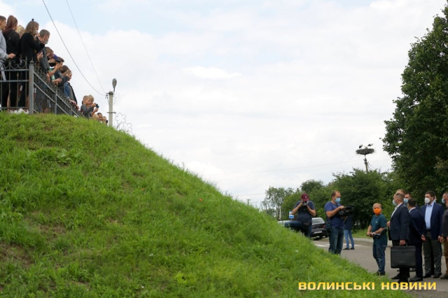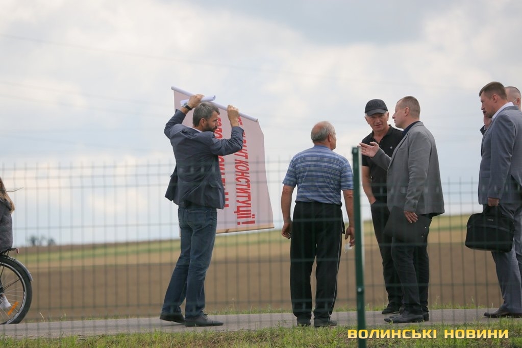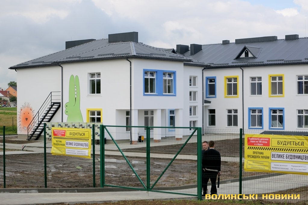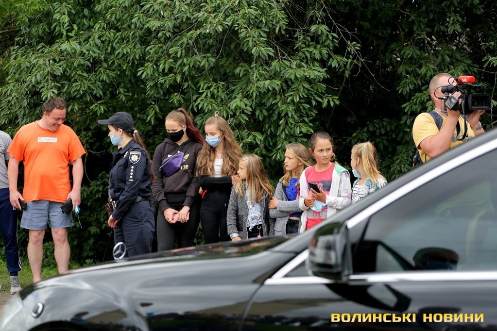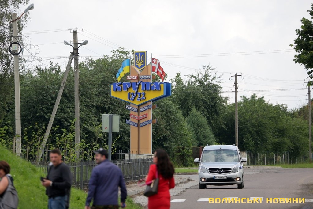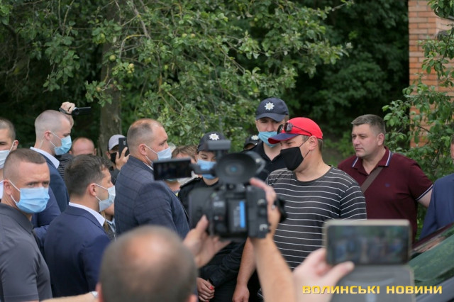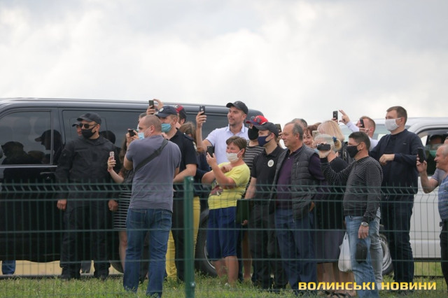 О 10.40 літак з Володимиром Зеленським приземлився в Луцьку, і він одразу поїхав оглядати ремонт дороги поблизу села Дачне.Главі держави доповіли, що цього року завершать ремонт об’їзної дороги навколо Луцька, а 31 липня відкриють першу ділянку цього автошляху. Очільник Укравтодору повідомив, що в області цього року планували добудувати 156 км доріг державного значення, однак зможуть збільшити цю цифру до двохсот. Цьогоріч у регіоні планується побудувати 91 кілометр доріг місцевого значення та 47 кілометрів комунальних автошляхів. У цілому буде 330-350 кілометрів доріг.«Це прекрасний результат. Дай бог, щоб ми в цьому році все це зробили», – наголосив президент.Натомість у селі Крупа в цей час лише очікували президента, готуючись до його приїзду. На периметрі довкола дитячого садка розташовувалися поліцейські автомобілі, а місцеві жителі збиралися на меморіалі, який розміщений на горбку, сподіваючись хоч здалеку побачити президента. Цікаво, що біля самого дитсадка з невеличкого натовпу промайнув банер «Президент – гарант конституції, почуйте голос громади».Нарешті після огляду та температурного скринінгу на територію дитсадка запустили пресу. Журналістів змусили стати в одну точку та не виходити за намальовану крейдою лінію, поки президент огляне дитсадок, при цьому наголосивши, що фотографувати та знімати висадку та посадку Зеленського не можна, мовляв, службова інформація.Президент приїхав на кортежі з трьох автівок та, вийшовши з люксового Мерседеса, попрямував до натовпу людей. Як з’ясувалося, Володимира Зеленського зустріли жителі Заборольської та Княгининівської ОТГ, які не хочуть до Луцька. Про що говорили – достеменно не відомо, адже журналісти мусили стояти в одному місці. Але, поспілкувавшись кілька хвилин з людьми, президент ще кільканадцять секунд щось невдоволено розповідав, активно жестикулюючи, голові ОДА Юрію Погуляйку та першому заступнику керівника Офісу президента Сергію Трофімову.Тут же його зустріли забудовник Андрій Разумовський та заступниця голови ОДА Тетяна Щербак. «Всім доброго дня, здоров'я бажаю», – привітав президент журналістів старим військовим вітанням.