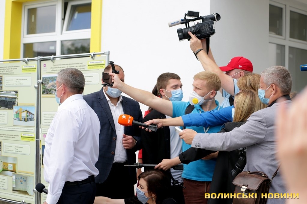 Після цього йому розповіли про будівництво дитячого садка, обіцяючи, що відкриють його вже 1 вересня, і провели територією та у приміщенні навчального закладу. Тим часом журналістам заборонили ходити за президентом, тож вони очікували на його вихід до преси, намагаючись зайняти якнайкращі місця.Володимиру Зеленському дитсадок сподобався, адже він гарний і сучасний, проте, на його думку, навчальному закладу трохи не вистачає атмосфери, зокрема, дерев, декору та насамперед дітей.