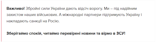 Звернення від Нацполіції, Збройних сил України, СБУ та інших правоохоронних структур до населення, аби не допустити просування ворога по нашій території.