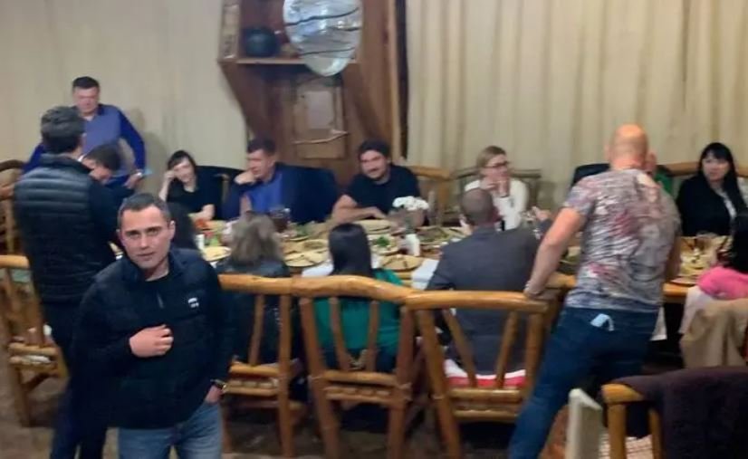 Журналіст видання зняв застілля, а також момент, коли нардеп Микита Потураєв вийшов подихати свіжим повітрям.Тим часом в Трускавці помітно розслаблений від застілля нардеп від «Слуги народу» Микола Тищенко розповів, чого очікує від завтрашньої зустрічі з президентом Володимиром Зеленським.