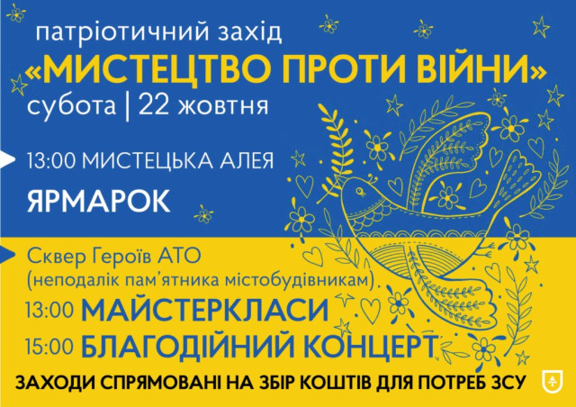 У Нововолинську 22 жовтня відбудеться благодійний захід «Мистецтво проти війни».