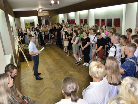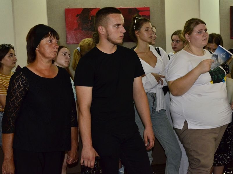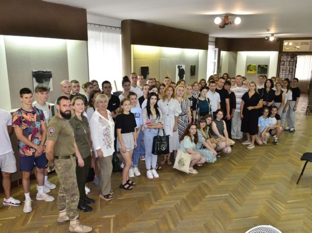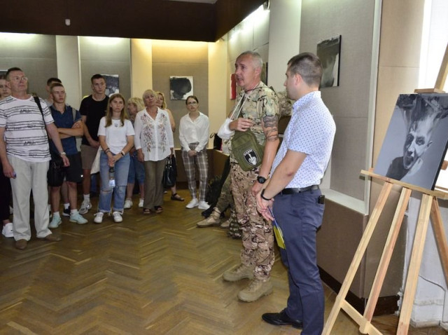 Захід відвідав легендарний волинський кіборг Вадим Ваврищук, ветеран російсько-української війни, комендант оборони диспетчерської вежі Донецького аеропорту. Він розповів, що разом із побратимами познайомився з Олегом під час відкриття його попередньої виставки у музеї в 2018 році. Перед ним стояв хлопчина, який не вирізнявся фізичними даними, але ще тоді сказав, що хоче захищати Батьківщину, і слова свого дотримав.Читати ще: У Луцьку – художня виставка, на якій можна побачити портрети Зеленського та пілота Karaya