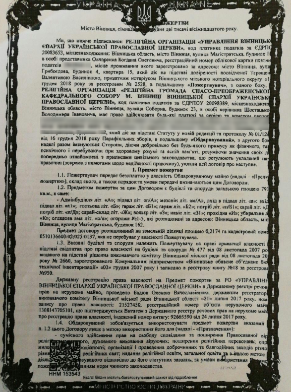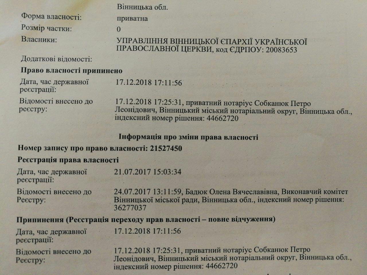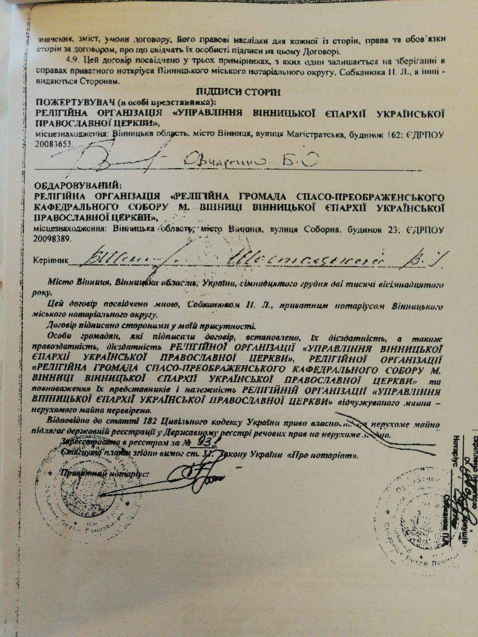 Митрополит Симеон сам собі подарував усі будівлі управління Вінницької єпархії. Документи