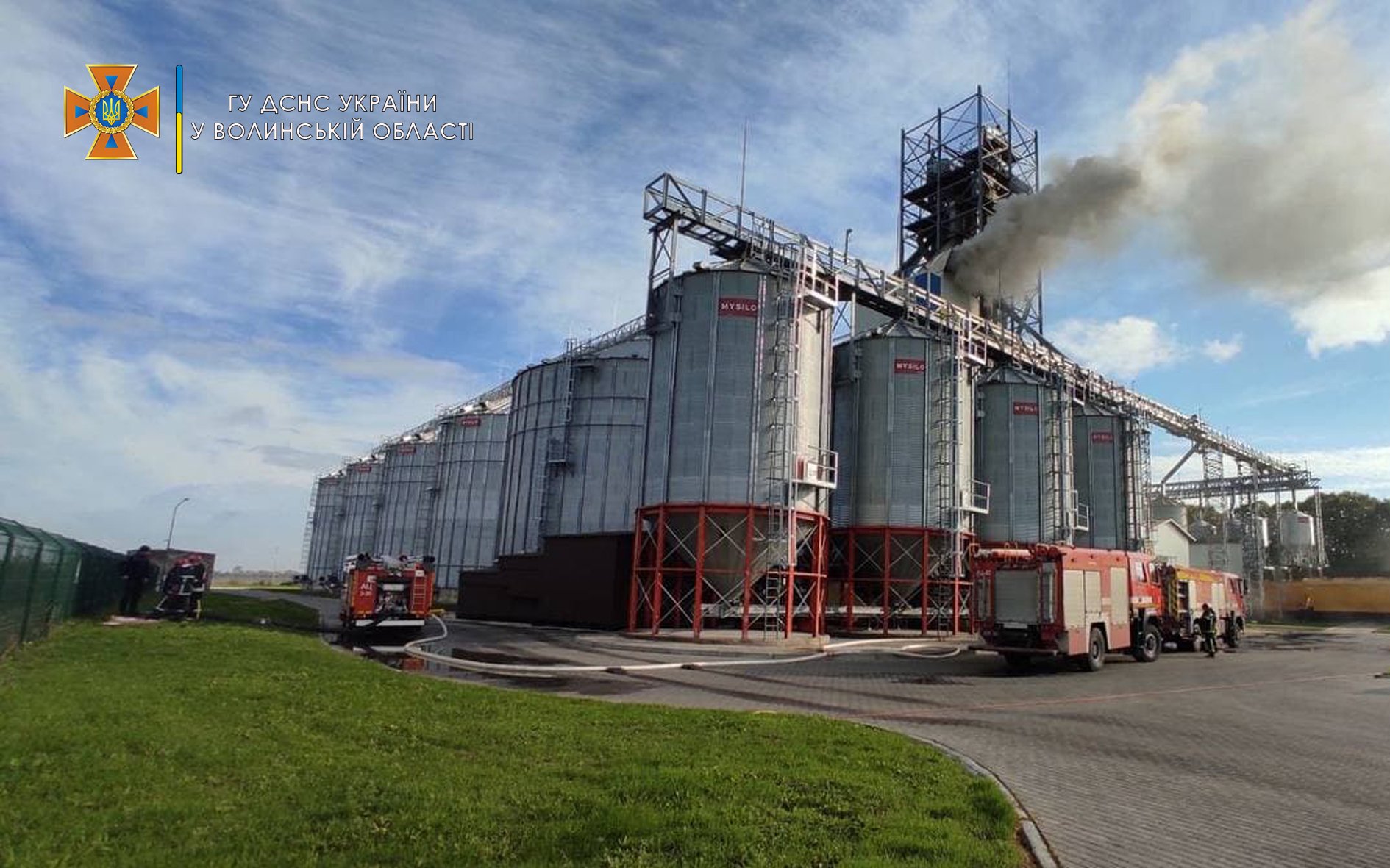 На агропідприємстві біля Луцька горіла сушильна камера заввишки 24 метри. Відео