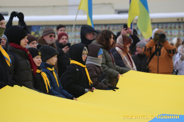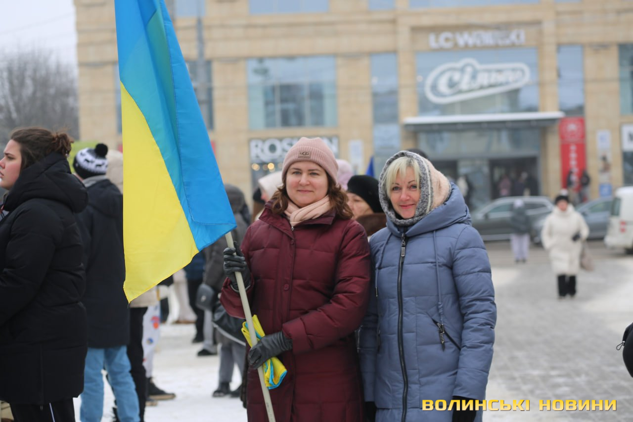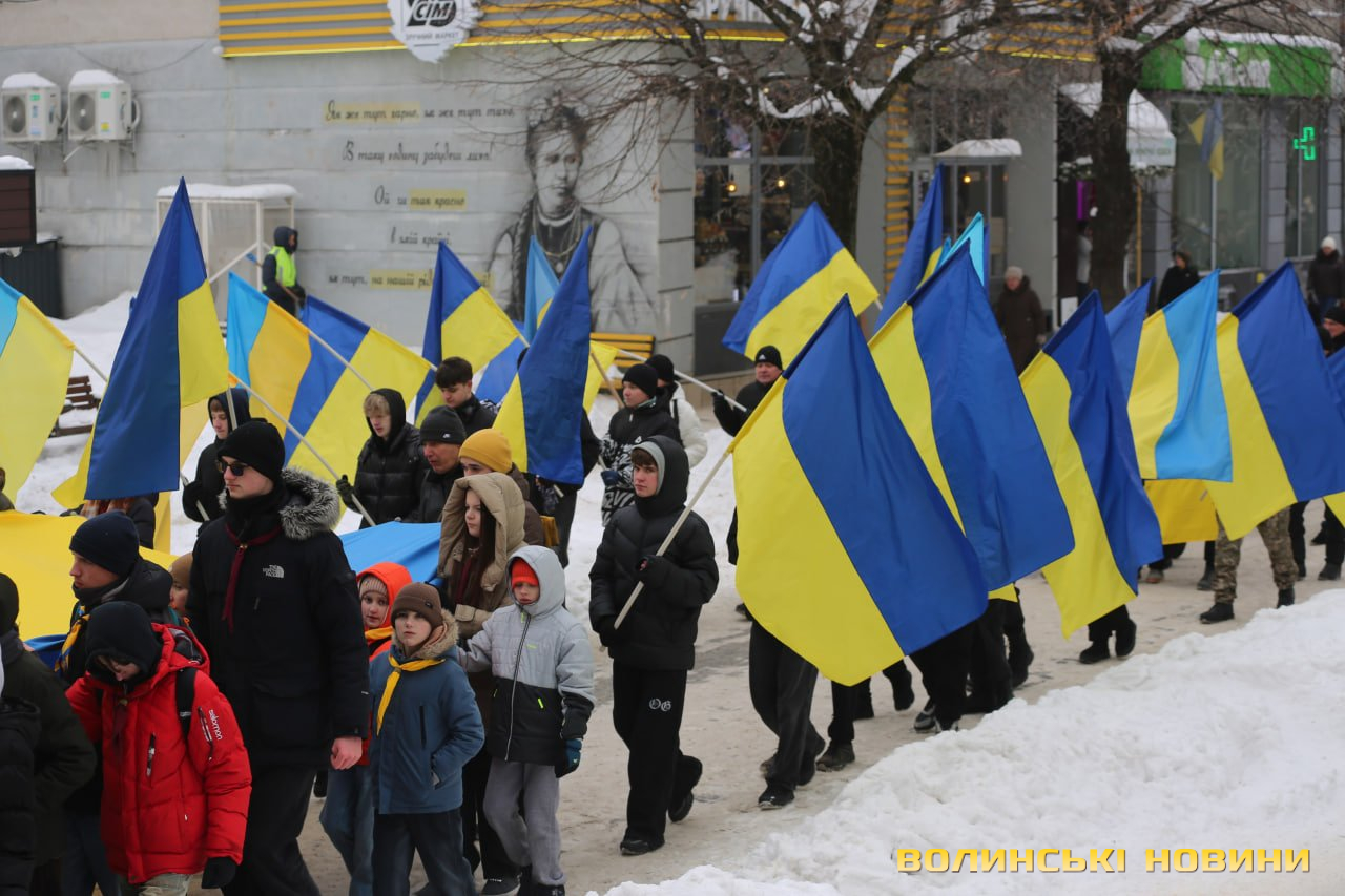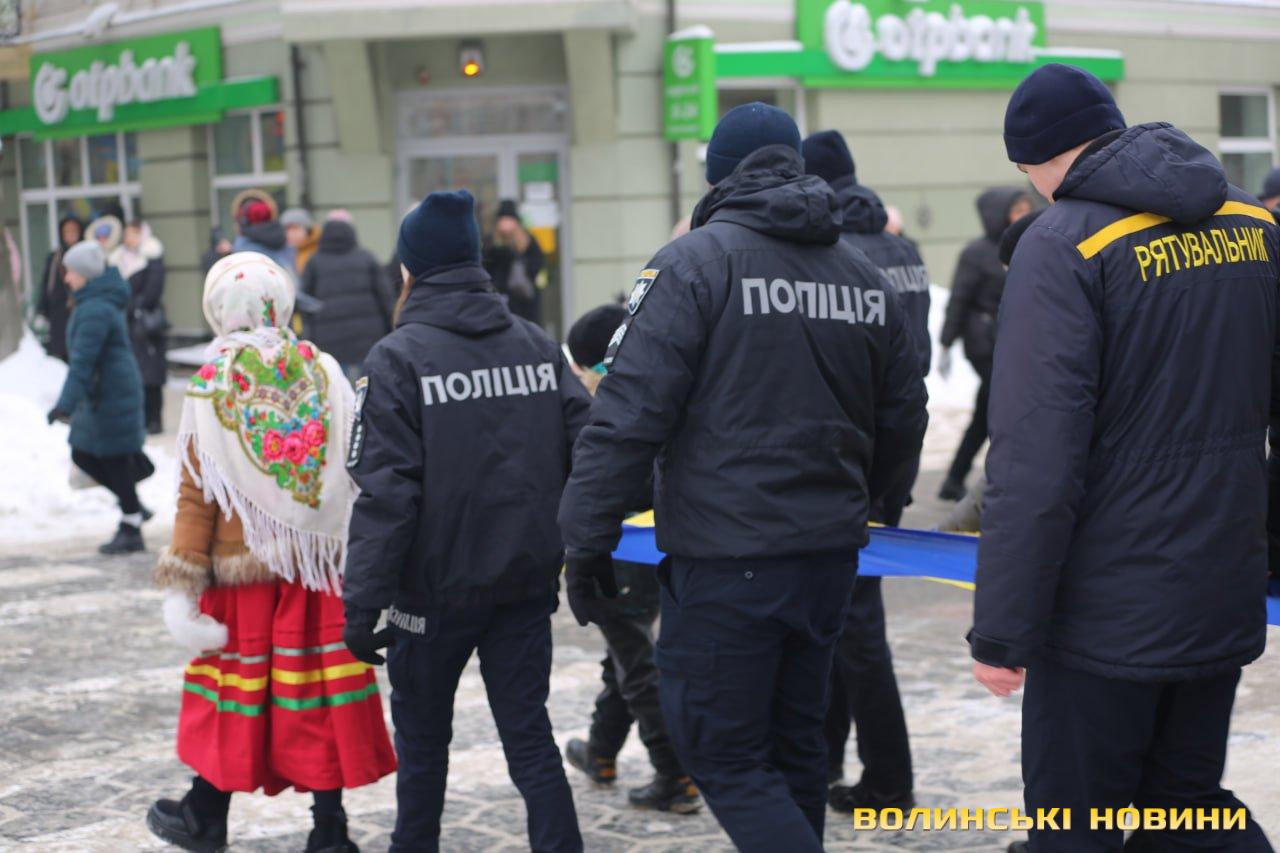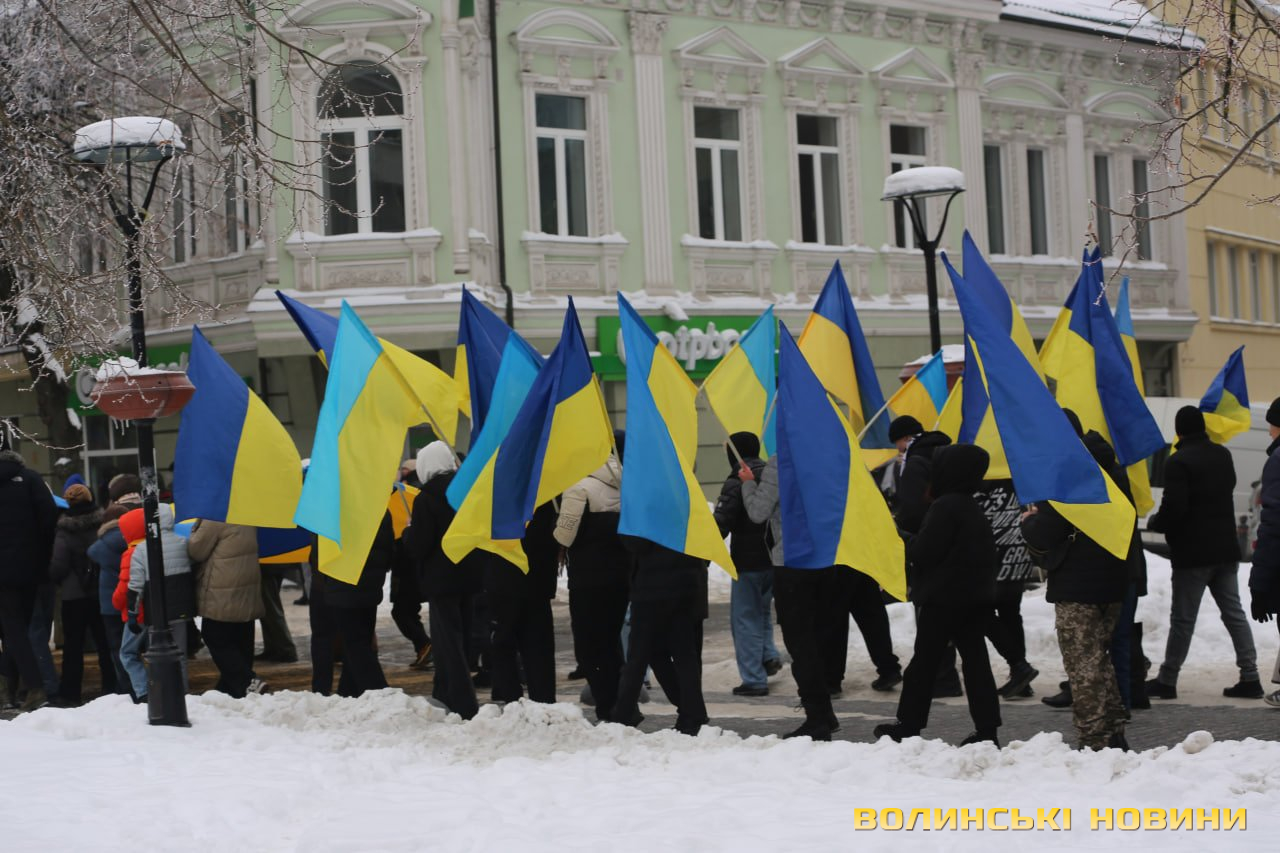 «Дякую всім, хто бере участь у заході. Ми відзначаємо день, коли споконвічні українські землі ЗУНР і УНР об’єдналися в єдину державу. Ми починаємо захід на священному місці, де є портрети наших Героїв з Волині. Але більшість із них загинули на Донбасі, Сумщині, Запоріжжі, Херсонщині – на споконвічних українських землях. Вони окропили єднання кров’ю. Із цього майдану в 1990 році громадськість Луцька і Волині їхала на «Ланцюг єднання». І стояли вони десь між Рівненщиною та Житомирщиною, стояли на різних відрізках, бо відчували єднання», – пригадав Сергій Годлевський.Акція засвідчила патріотизм і сильний дух українського народу. Незважаючи на морозну погоду, лучани міцно тримали державний стяг. Така ініціатива стала нагадуванням, що Україну не зламати й не розділити.