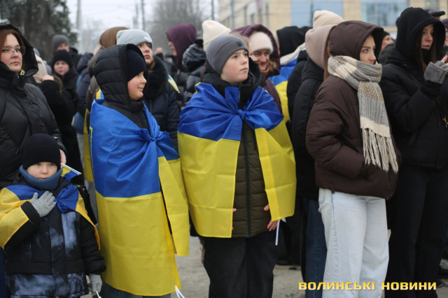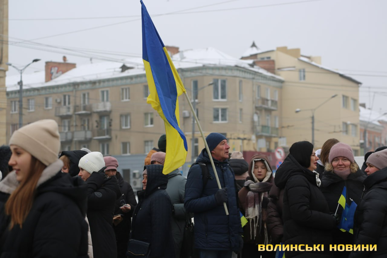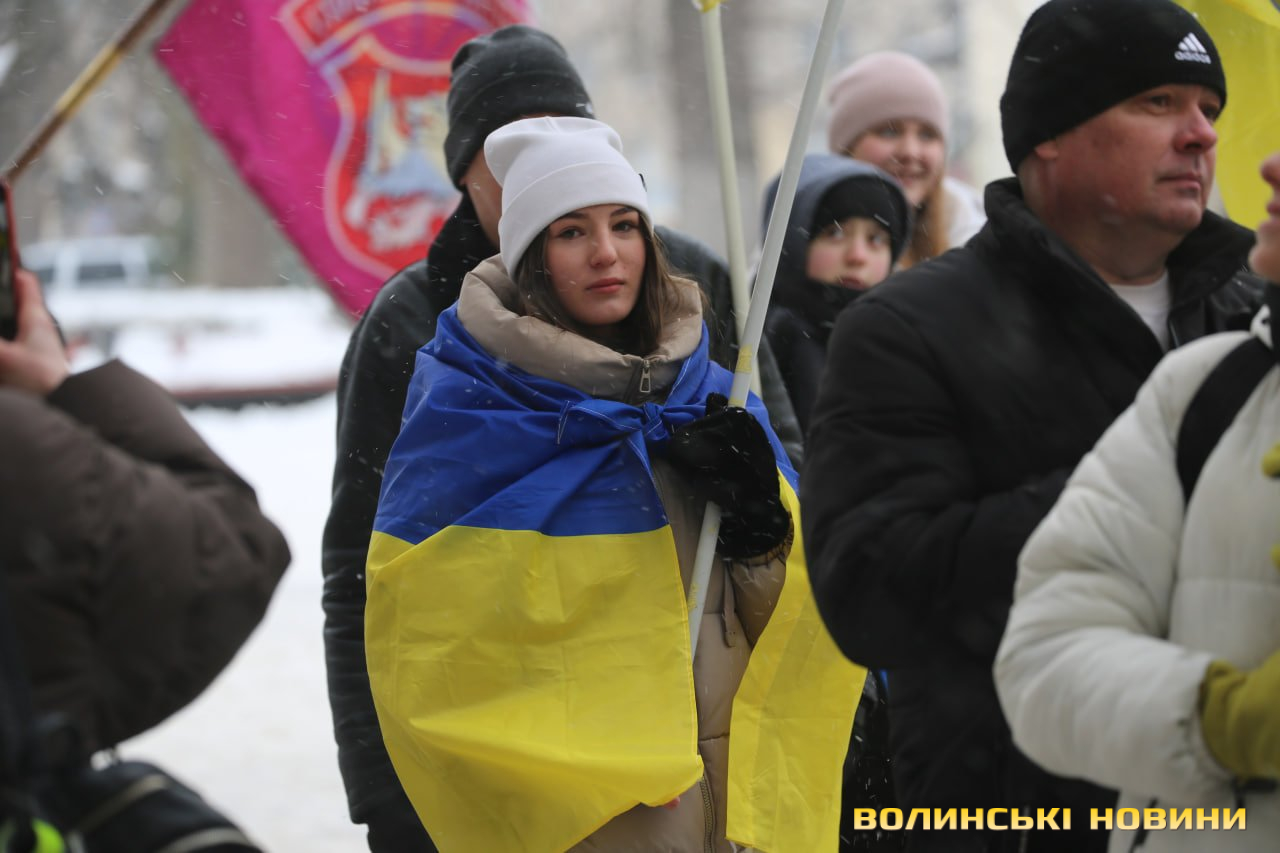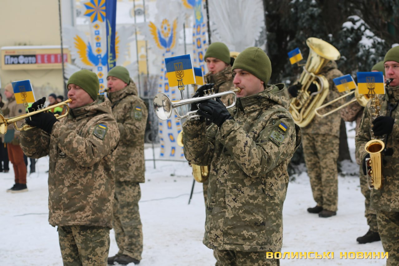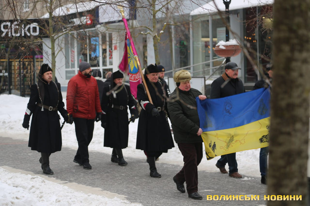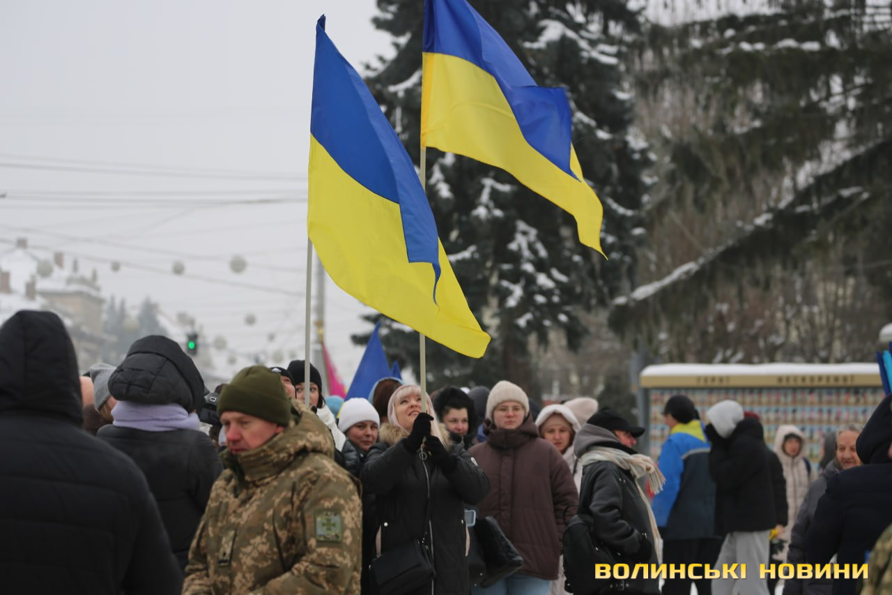 «Дякую всім, хто бере участь у заході. Ми відзначаємо день, коли споконвічні українські землі ЗУНР і УНР об’єдналися в єдину державу. Ми починаємо захід на священному місці, де є портрети наших Героїв з Волині. Але більшість із них загинули на Донбасі, Сумщині, Запоріжжі, Херсонщині – на споконвічних українських землях. Вони окропили єднання кров’ю. Із цього майдану в 1990 році громадськість Луцька і Волині їхала на «Ланцюг єднання». І стояли вони десь між Рівненщиною та Житомирщиною, стояли на різних відрізках, бо відчували єднання», – пригадав Сергій Годлевський.Акція засвідчила патріотизм і сильний дух українського народу. Незважаючи на морозну погоду, лучани міцно тримали державний стяг. Така ініціатива стала нагадуванням, що Україну не зламати й не розділити.