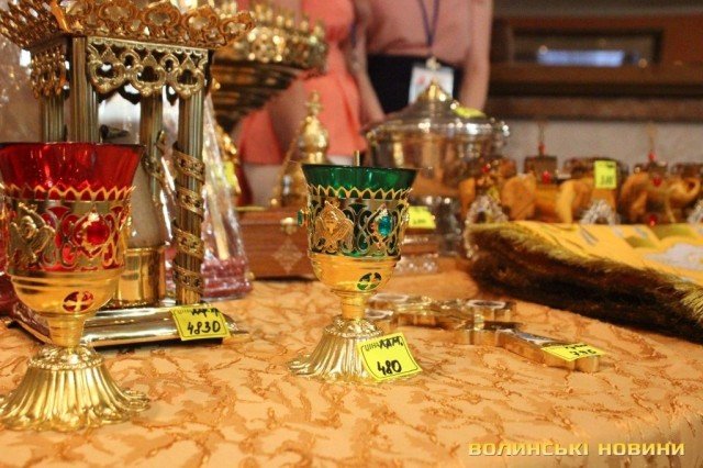 За 40 тисяч депутат Волинської обласної ради Валерій Діброва придбав ікону «Богородиця Покрова», у 39 тисяч нардепу Ірині Констанкевич обійшлася кована інсталяція «Сонце України сходить на Донбасі. Срібна ручка екс-начальника СБУ у Волинській області Володимира Мельниковича відійшла за 33 тисячі керівнику ПрАТ «Волиньобленерго» Володимиру Купчаку. А ось золотий «Parker» покійного міського голови Луцька Миколи Романюка – подарунок від Сергія Тігіпка на 30-річчя – придбав за 30 тисяч Віктор Чорнуха. Настінний годинник-метеостанцію митрополита Луцького і Волинського УПЦ КП Михаїла продали за 26 тисяч гривень. Також чималу суму вдалося виручити за наручний годинник Сергія Мартиняка, колекційне вино, 100-річну німецьку скрипку, м’яч із автографами футболістів збірної України та старовинне євангеліє, надане Володимиром Гунчиком.