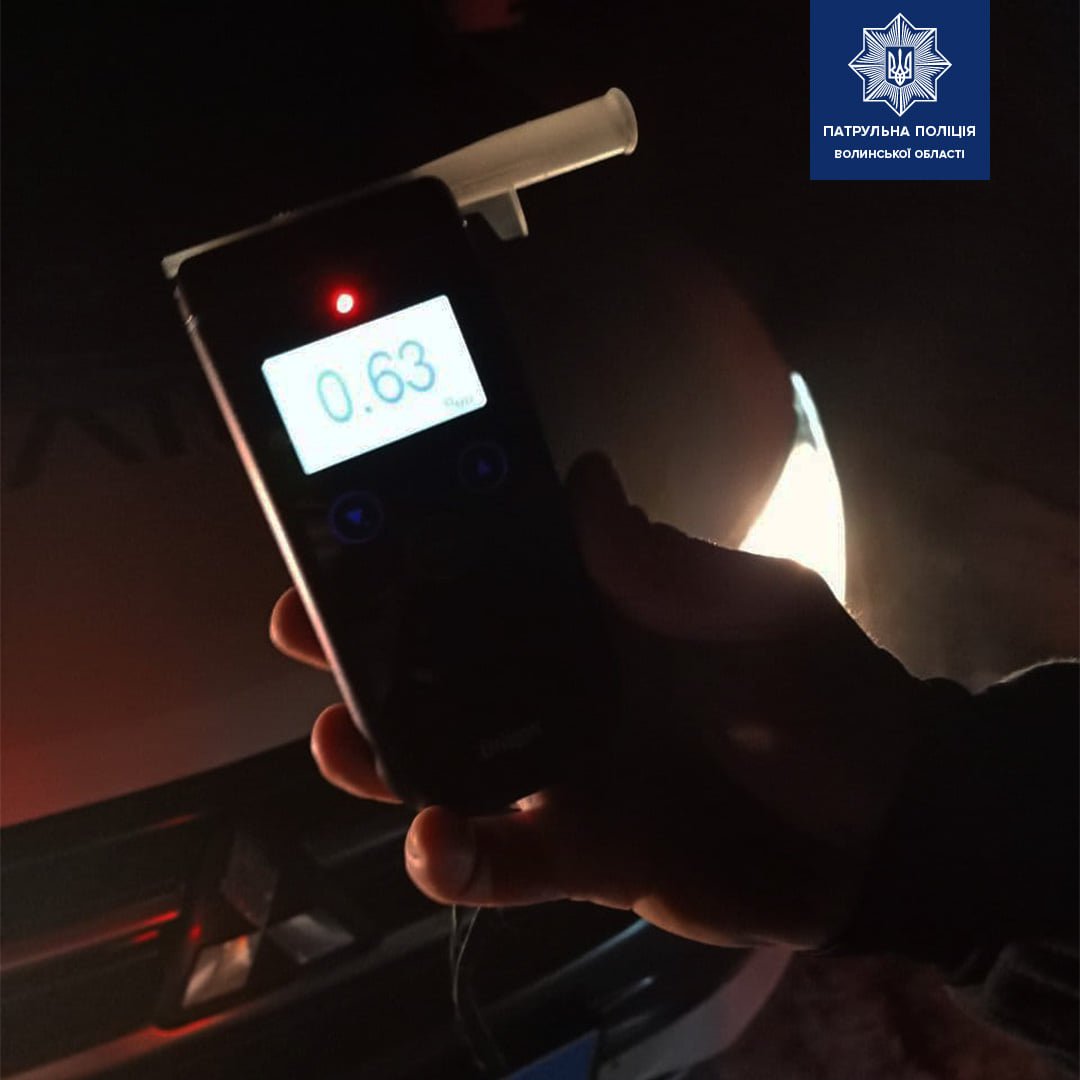 Під час спілкування із керманичем, у нього також виявили ознаки алкогольного сп’яніння. Огляд на стан сп’яніння на місці зупинки у присутності двох свідків показав результат у 0,63 проміле, що в 3 рази перевищував допустиму норму.