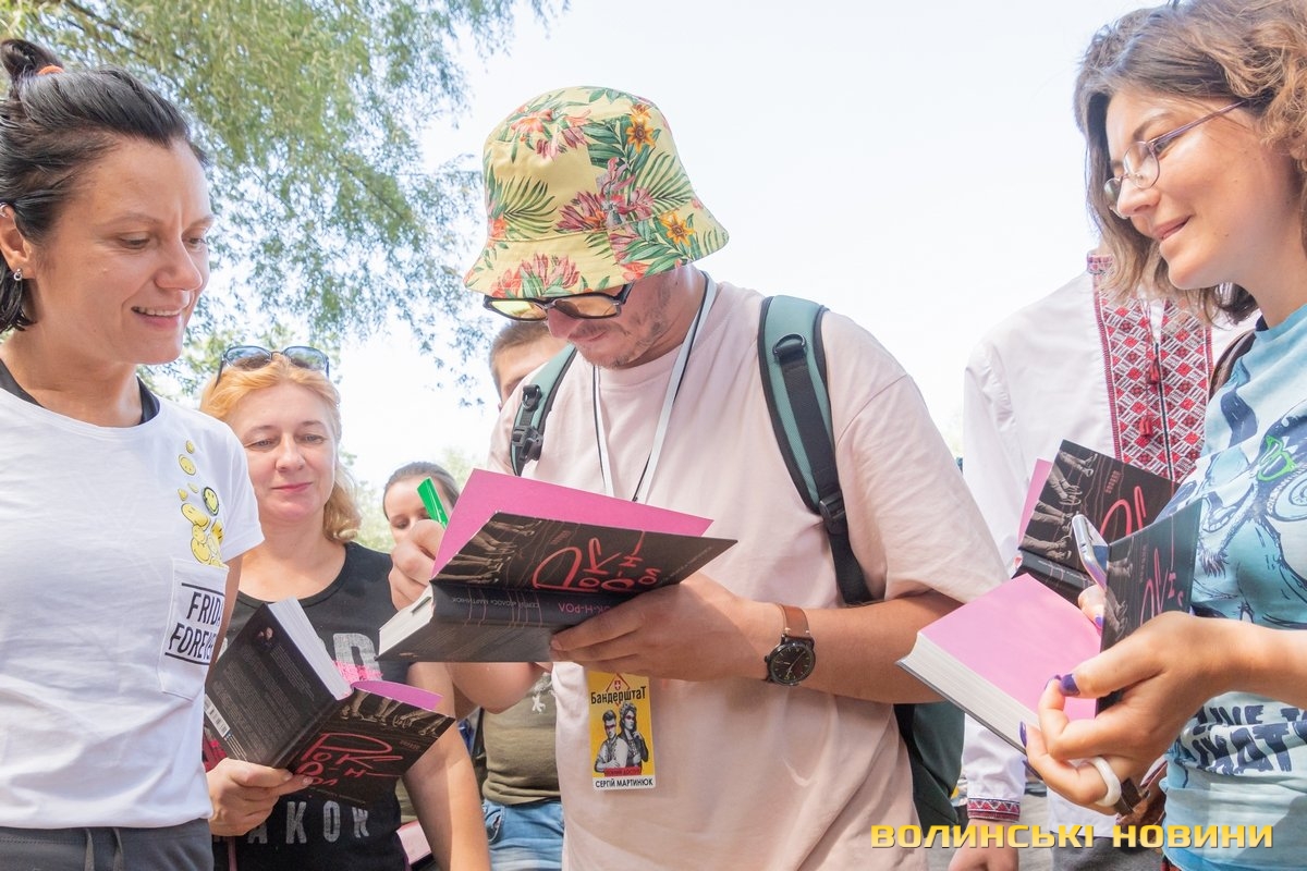 Цікавились фестивальники і літературною творчістю Сергія Мартинюка. Як відомо, він написав і видав два романи: «Капітан Смуток» і «Рок-н-Ролл», а також поетичну збірку «Реп’яхи».Останні місяці Сергій активно пише нову поезію й планує в наступному році видати свіжу поетичну збірку. «Я б дуже хотів, бо неймовірно засмакував ділитися з великим колом людей своїми віршами», – зазначає він.
