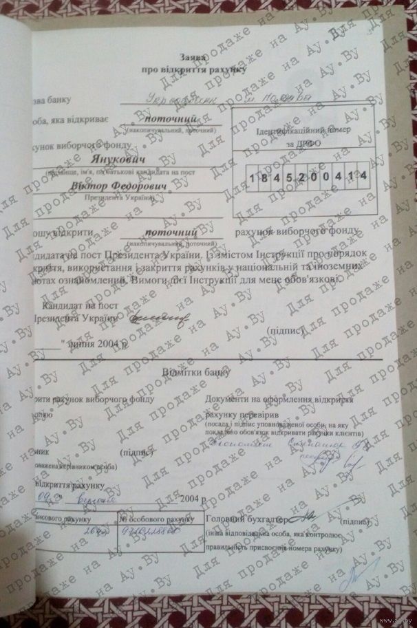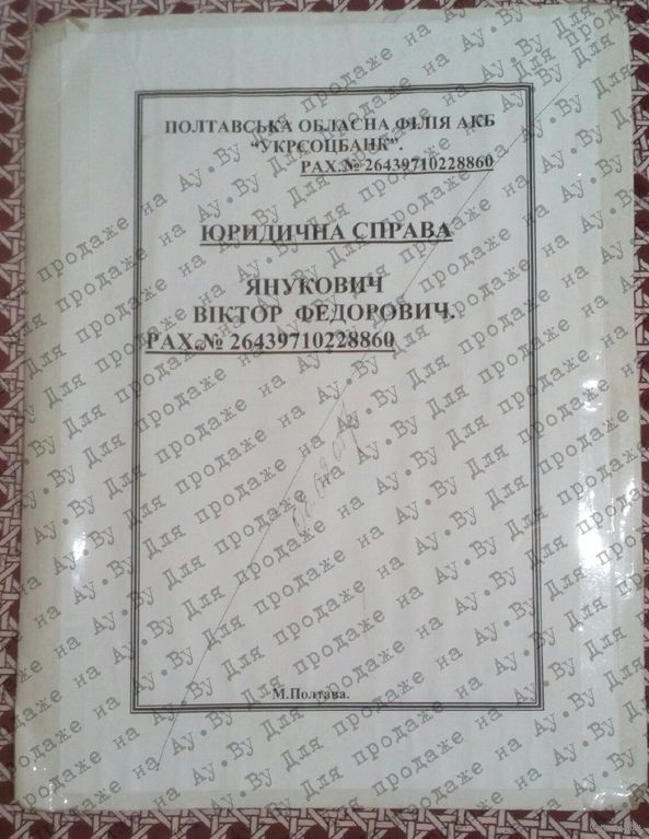 За 49 тис. білоруських рублів пропонують купити банківську юридичну справу з копією паспорта експрезидента України. На документах є підписи самого Януковича.