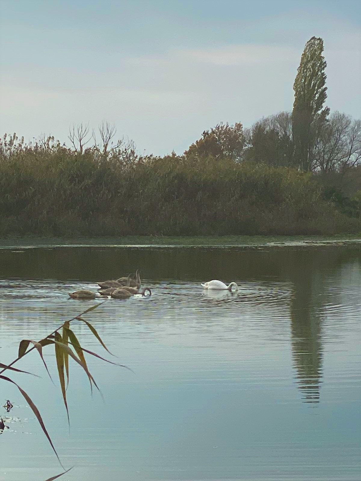 Лебеді ладні будь-де плавати, лиш би врятуватись від мисливців.