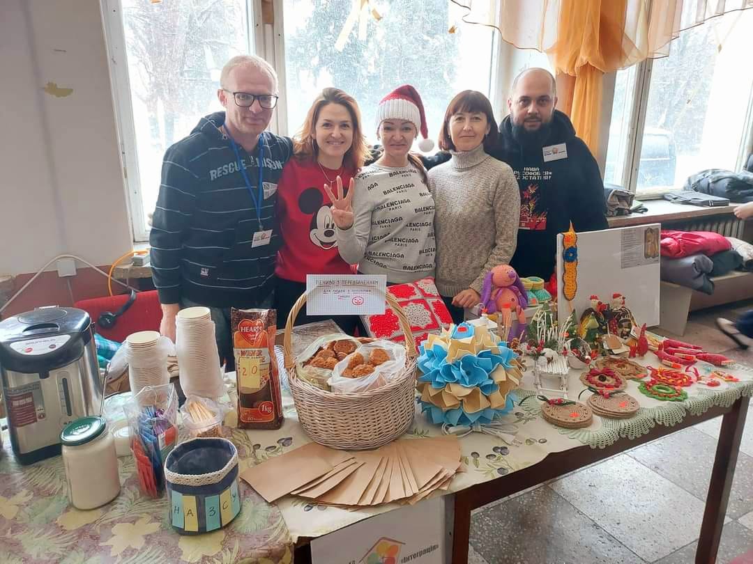 Громадська організація «ВПО України Інтеграція» – організація внутрішньо-переміщених осіб – приєдналася до волонтерської роботи і подужали чимало аспектів у підготовці та проведенні заходу. Як і попередні рази, волонтери пропонували гостям різножанрову літературу, частували чаєм, кавою, печивом з побажаннями, випічкою. Яскраві шедеври майстринь ручних виробів створювали особливу атмосферу прийдешніх різдвяно-новорічних свят.