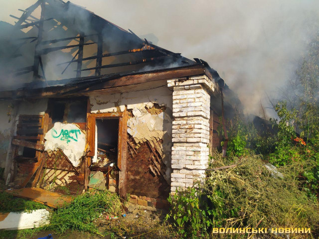До слова, у будинку часто жили безхатченки. У 2017 році в пожежі, яка трапилася у цій будівлі, загинув чоловік.За станом на 15.49, зі слів очевидців, вогонь практично загасили. Полум'я знищило весь будинок - дерев'яні стіни та перекриття.