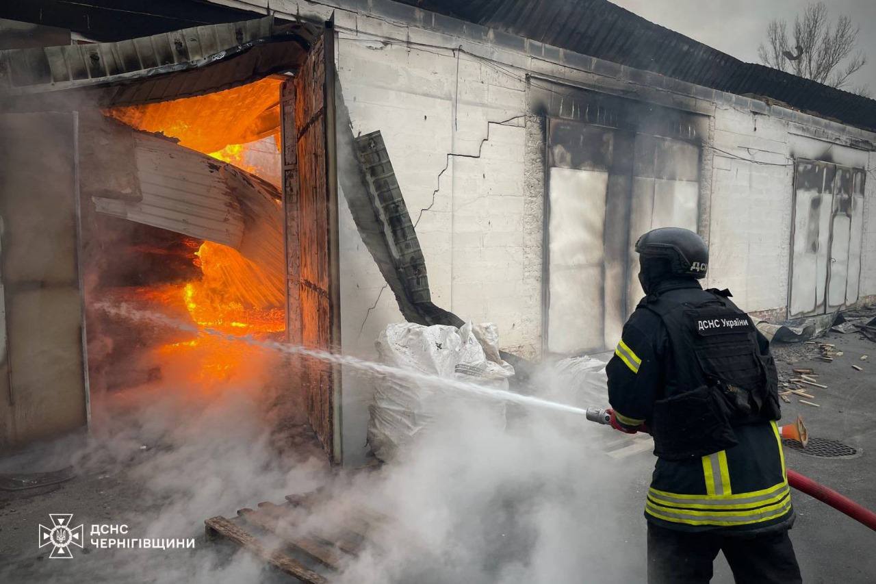 За його словами, у Семенівці Новгород-Сіверського району через влучання FPV-дронів пошкоджено легковик і цивільний мікроавтобус.У Корюківці окупанти влучили «Шахедами» по підприємству, що виготовляє міжкімнатні двері. Зафіксовано щонайменше шість вибухів. Зайнялися склади, де була і готова продукція. На місці працювали рятувальники.