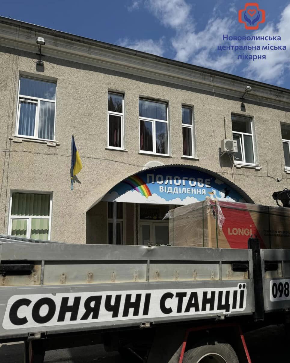 На даху пологового корпусу КНП «Нововолинська ЦМЛ» триває будівництво сонячної електростанції (СЕС).