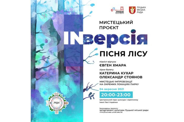 Мистецький проєкт «INВЕРСІЯ. Пісня лісу» за участю зірок балету відбудеться 4 вересня у центральному парку. Початок заходу о 20:00, інформують на сайті міськради.